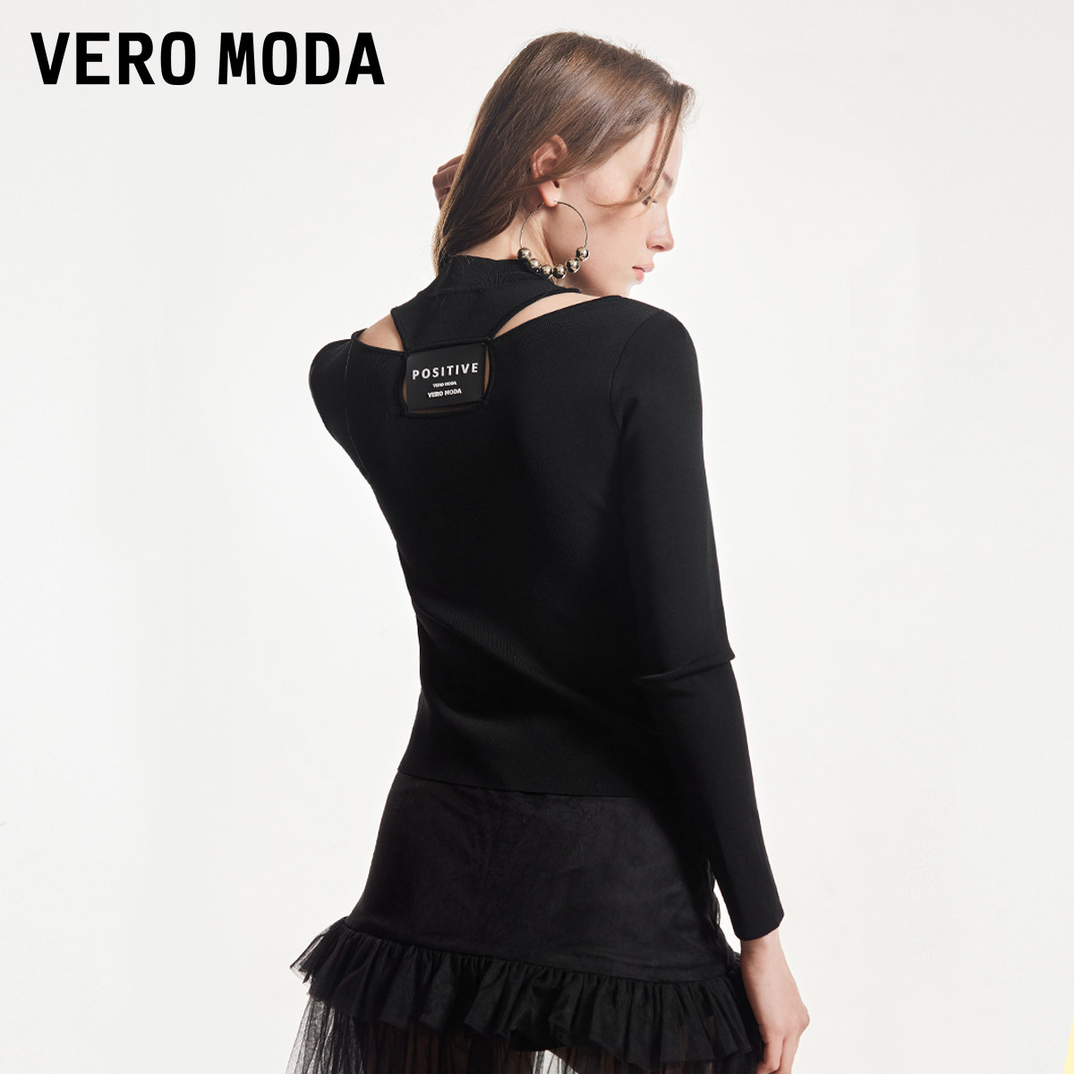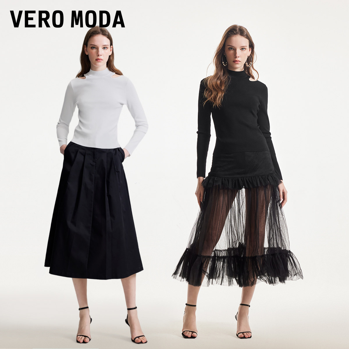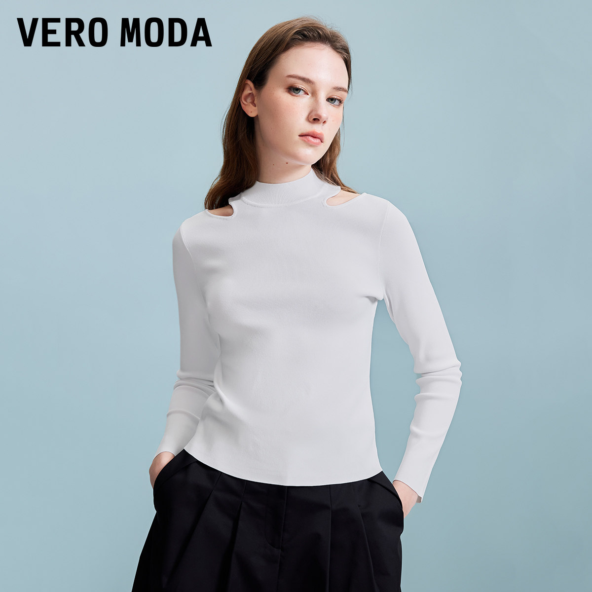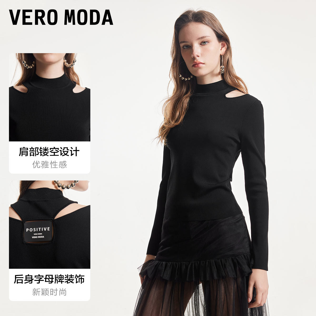 Vero Moda奥莱针织衫毛衣女秋冬新款修身半高领肩部镂空上衣流行