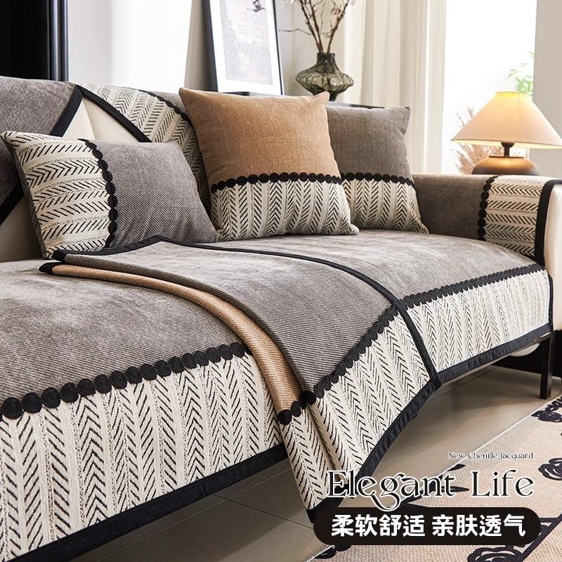 雪尼尔沙发垫四季通用可拆洗防滑防猫抓简约现代三座一贵妃沙发套