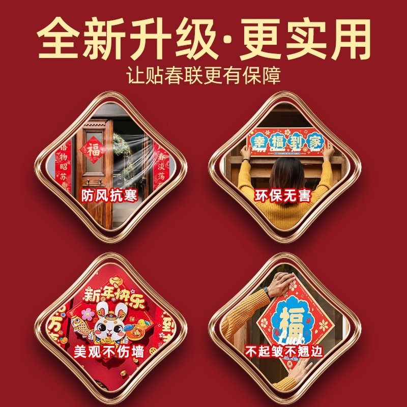 贴对联无痕胶春联专用双面胶不留痕透明多功能高粘度强力易撕贴自粘婚庆婚房车喜字福字年画气球装饰固定神器