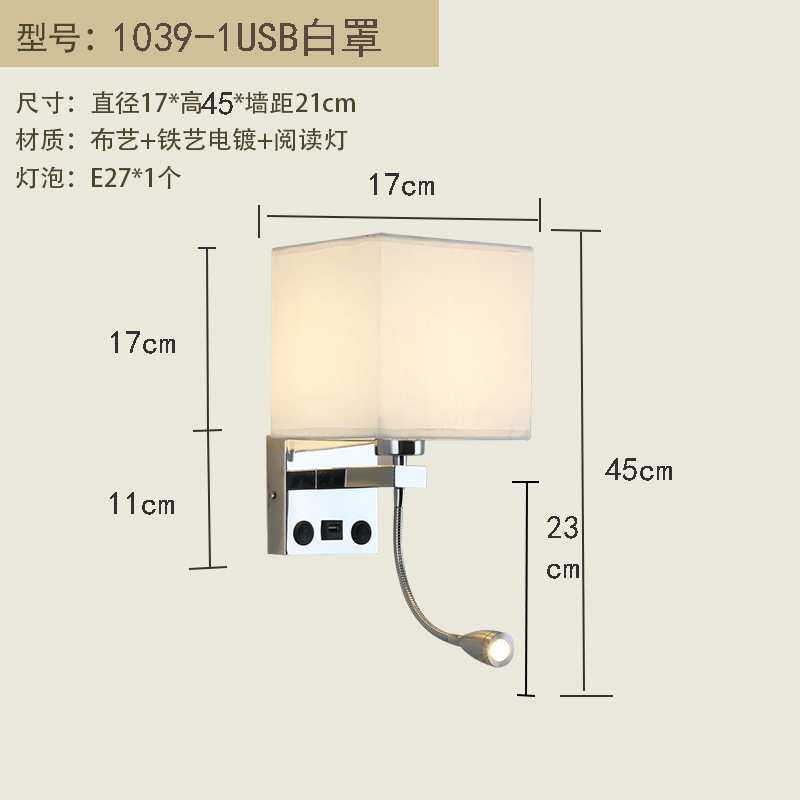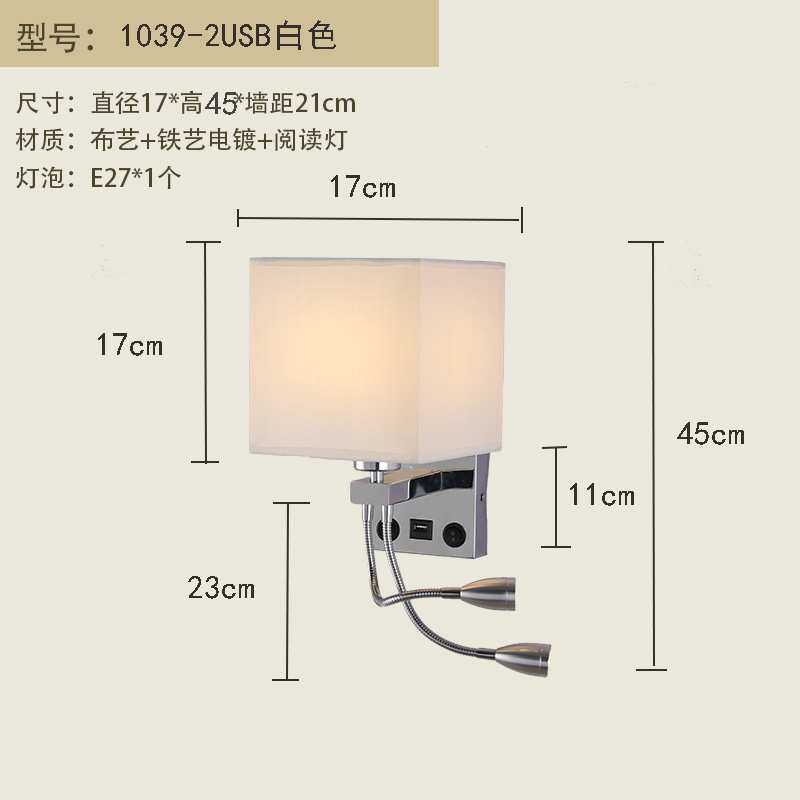 壁灯卧室床头带开关带USB充电壁灯美式客厅壁灯欧式布艺壁灯