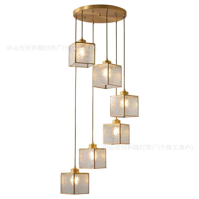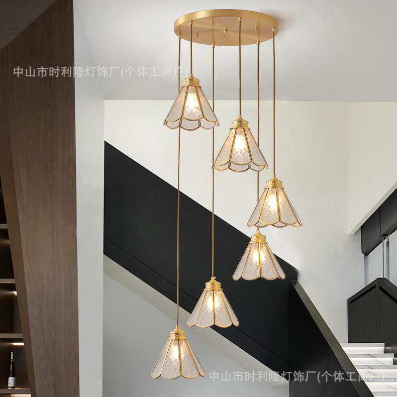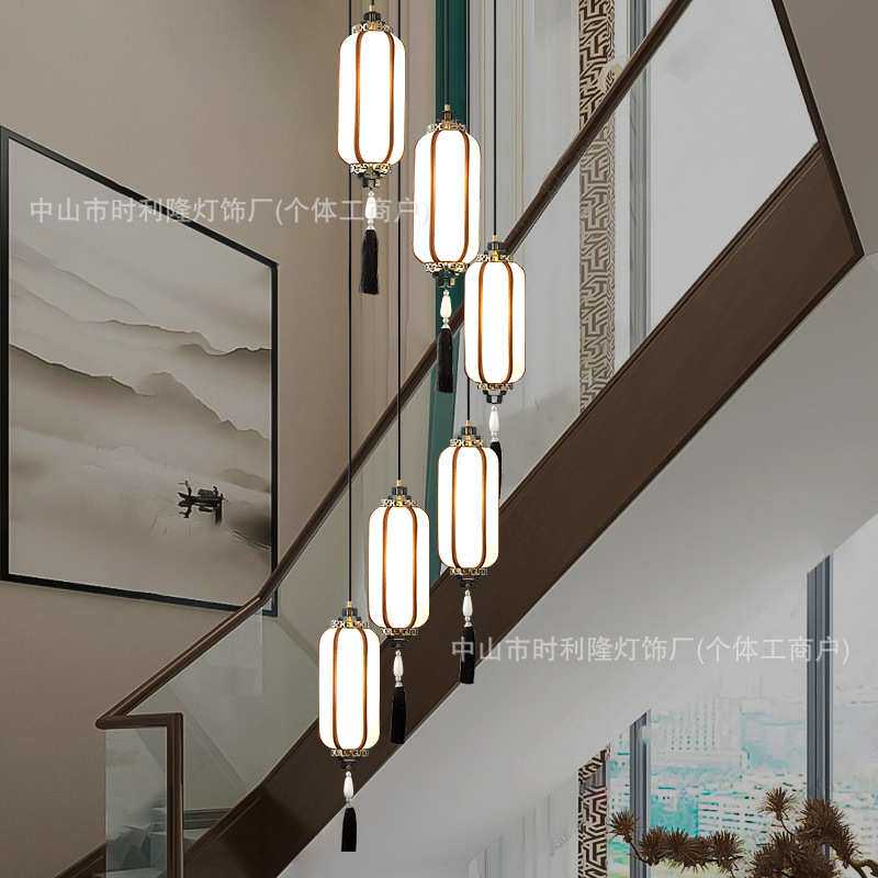 新中式全铜布艺主卧室床书房餐厅吧台茶楼茶室禅意中国风楼梯吊灯
