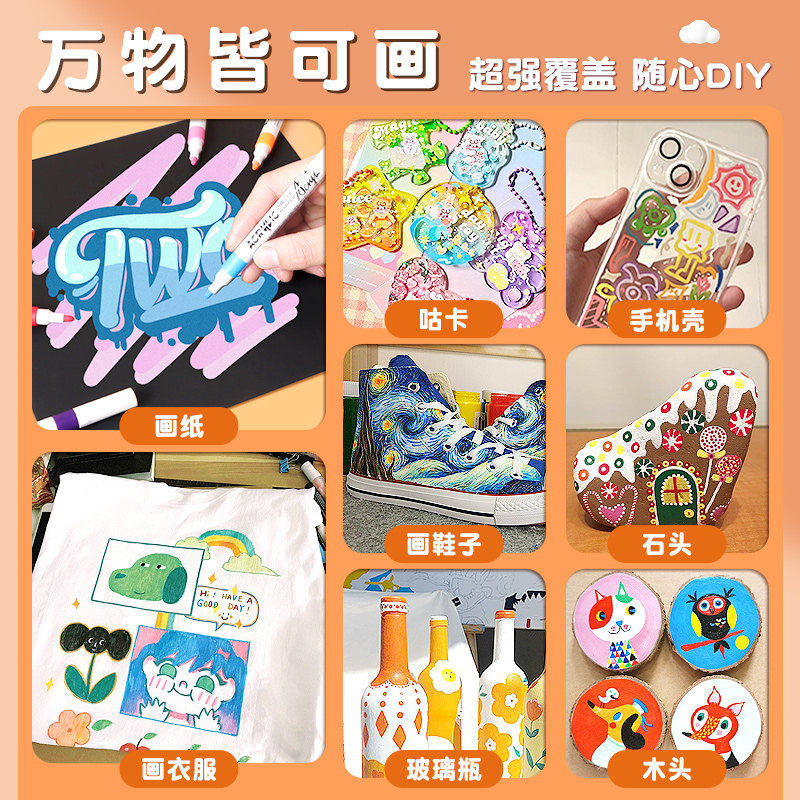 丙烯马克笔防水速干水彩笔儿童美术陶瓷石头涂鸦绘画彩色画笔套装