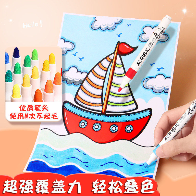 丙烯马克笔学生专用美术业不透纸可叠色儿童幼儿园小学无毒可水洗