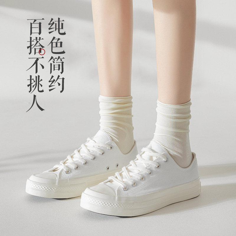 白色袜子女春秋款堆堆袜配乐福鞋棉袜夏天吸汗透气无骨中筒月子袜