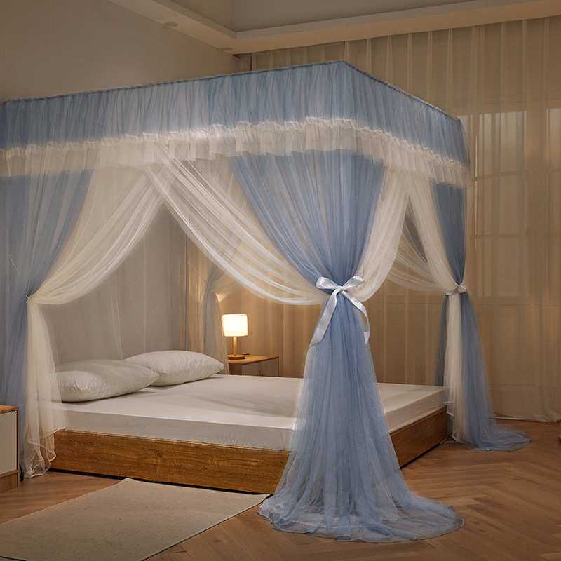 公主风双层花边宫廷蚊帐家用1米8床落地文帐a类防尘三开门防纹帐