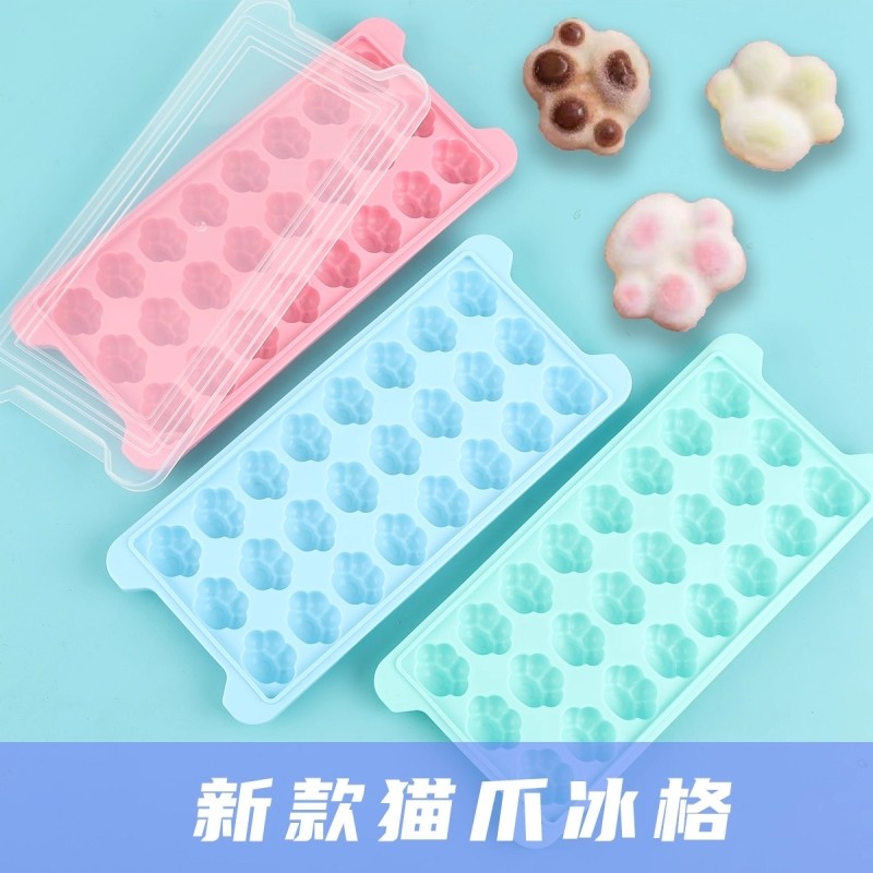 猫爪冰格方形带盖小型制冰家用速冻冰格DIY冰盒创意24格硅胶模具