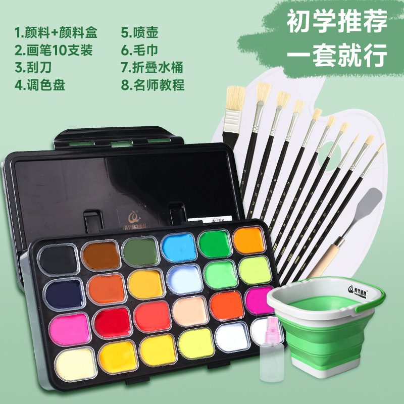 青竹水粉果冻颜料套装30ml24色40色初学者幼儿园学生用水粉画儿童少儿美术生专用颜料小盒便携绘画工具套装