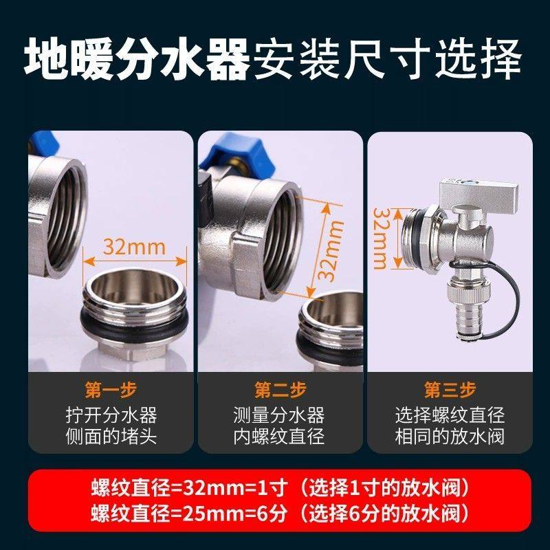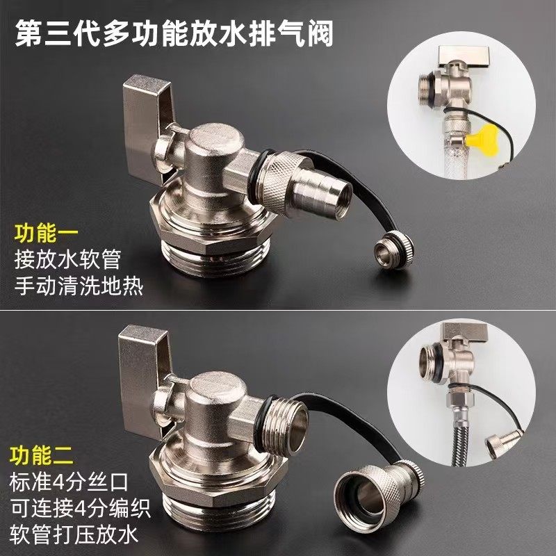 地暖分水器放水阀多功能大流量家用排污气阀门1寸6分全铜暖气片