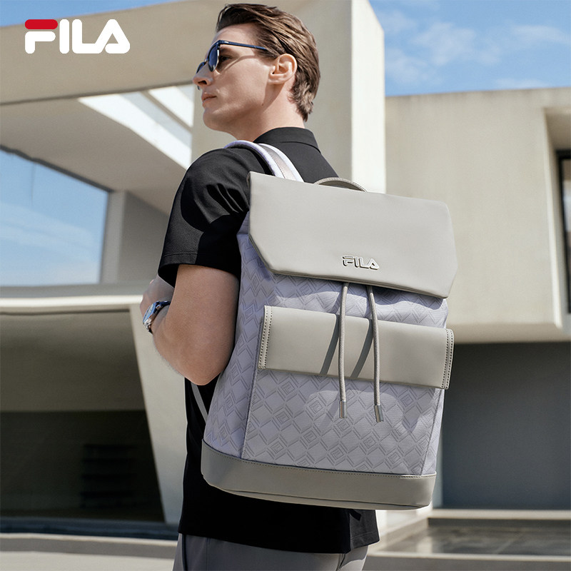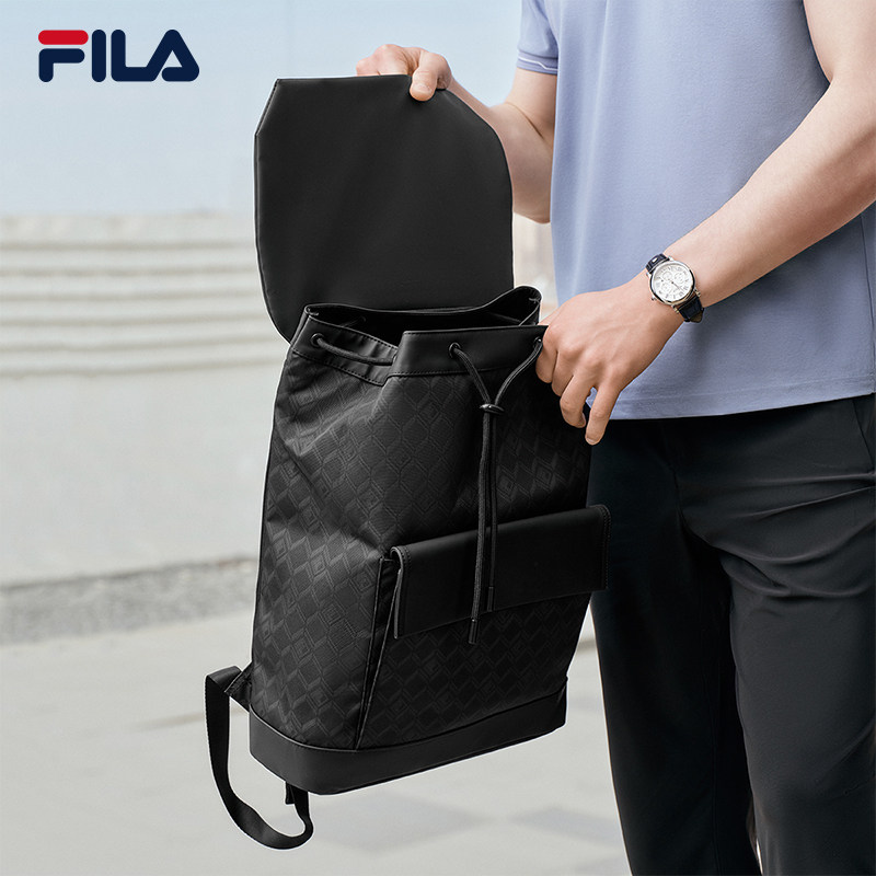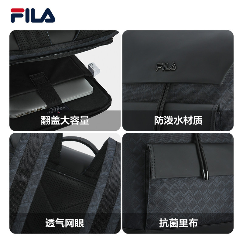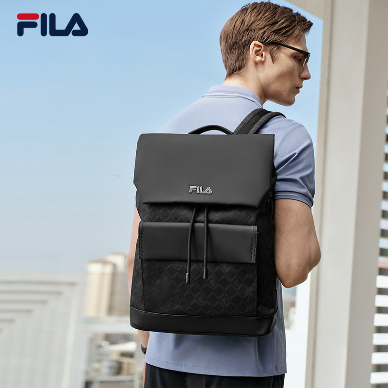 黑武士|FILA 斐乐官方男士背包通勤时尚休闲双肩包书包翻盖双肩包