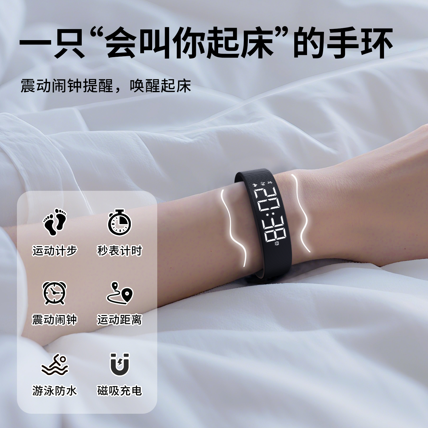 电子手表男中学生女无声震动闹钟起床神器智能黑科技运动手环考试