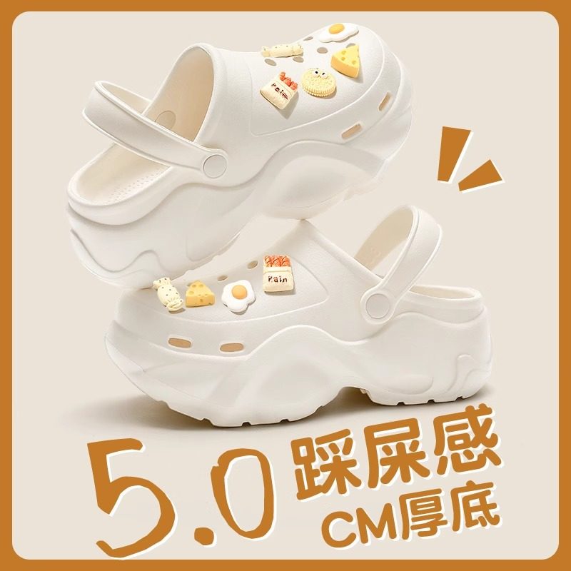 厚底女款洞洞鞋外穿夏季2025新款海边沙滩增高凉拖鞋女士防滑包头