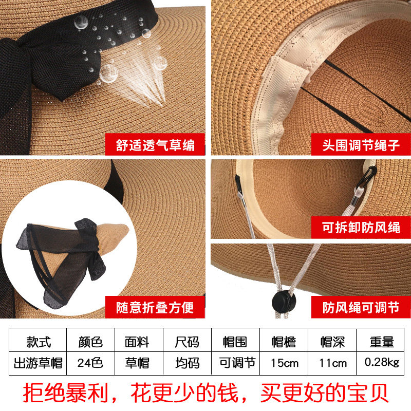 超大草帽女款夏季防晒沙滩帽子太阳帽海边度假可折叠帽檐新款遮阳