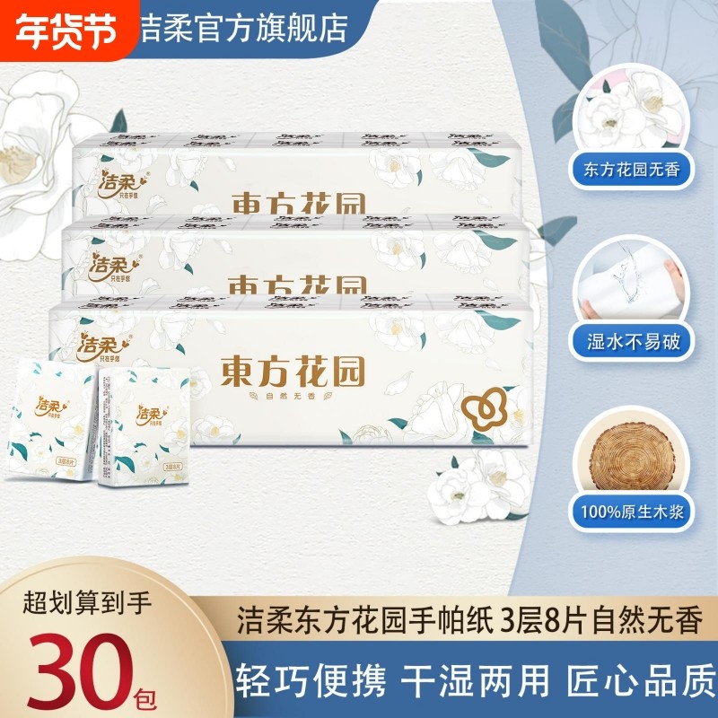 洁柔东方花园手帕纸便携式无香纸巾小包随身装餐巾纸卫生纸面巾纸