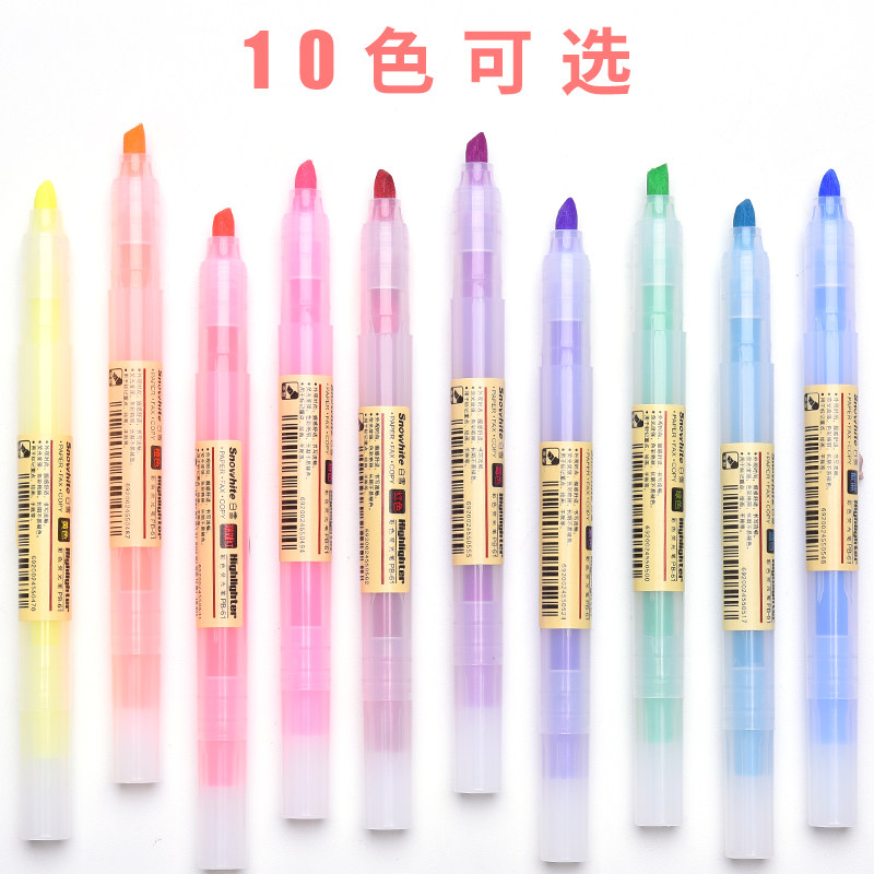 白雪大容量荧光笔学生黄色绿色套装彩色柔色批发香味多色淡色浅色橙色不晕染红色迷你儿童小学生糖果标记笔
