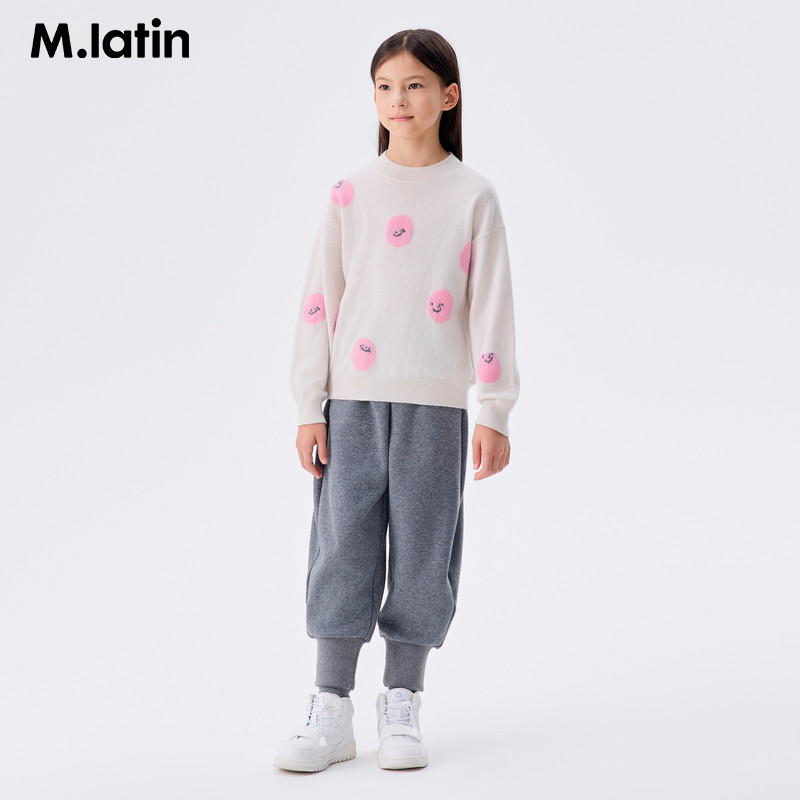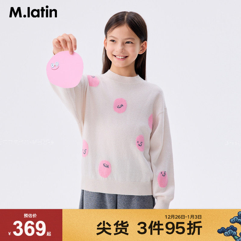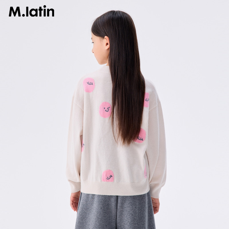 【商场同款】马拉丁童装冬新款女大童笑脸提花保暖半高领羊绒衫