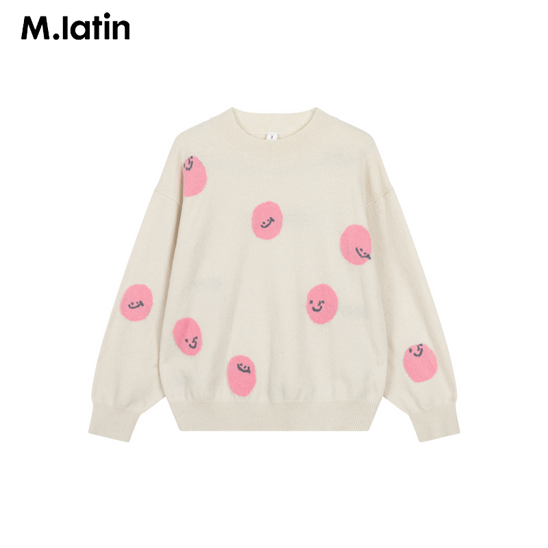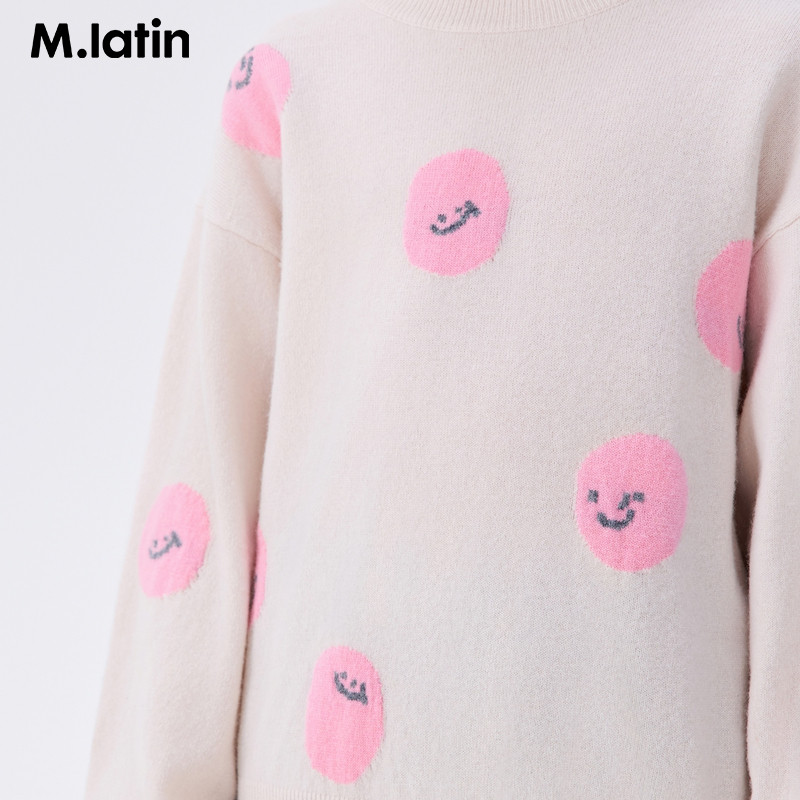 笑脸提花羊毛羊绒混纺半高领套头毛衣