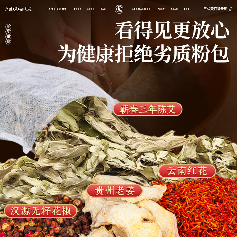 泡脚药包去湿气排毒助睡眠艾草叶生姜花椒红花中药非祛湿寒足浴包