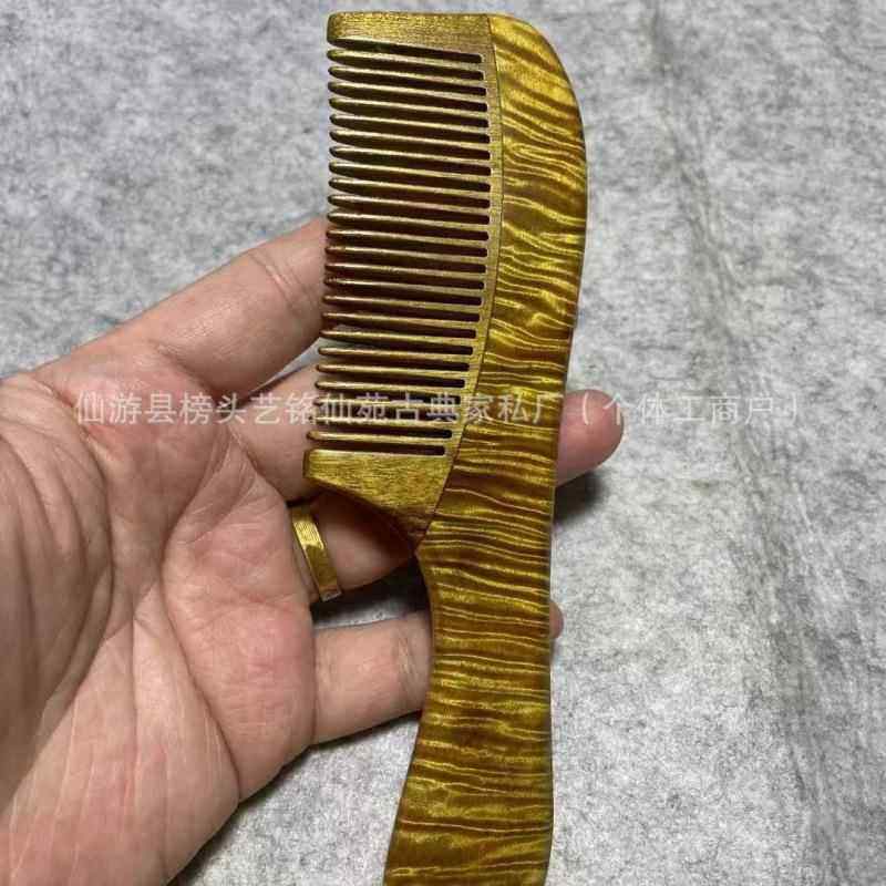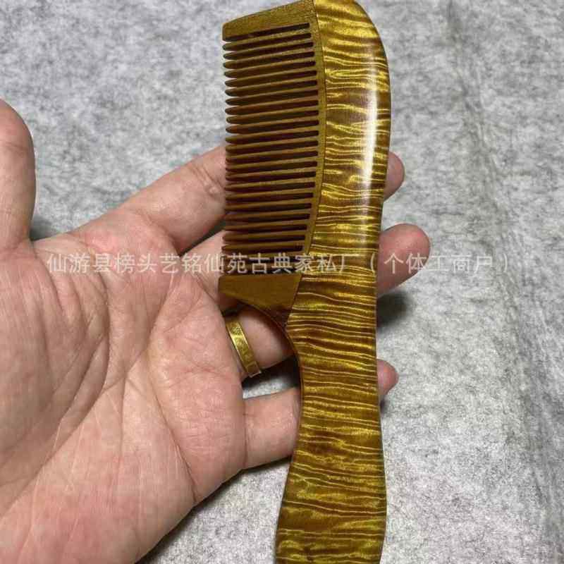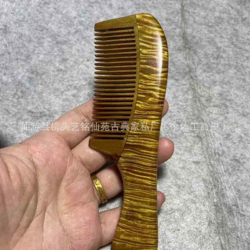 艺铭仙苑金丝楠木长柄梳子木梳创意木雕工艺品家用半月头梳