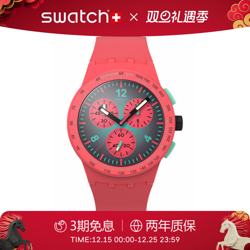 Swatch斯沃琪瑞士手表新款三眼计时学生彩盘运动石英腕表圣诞礼物