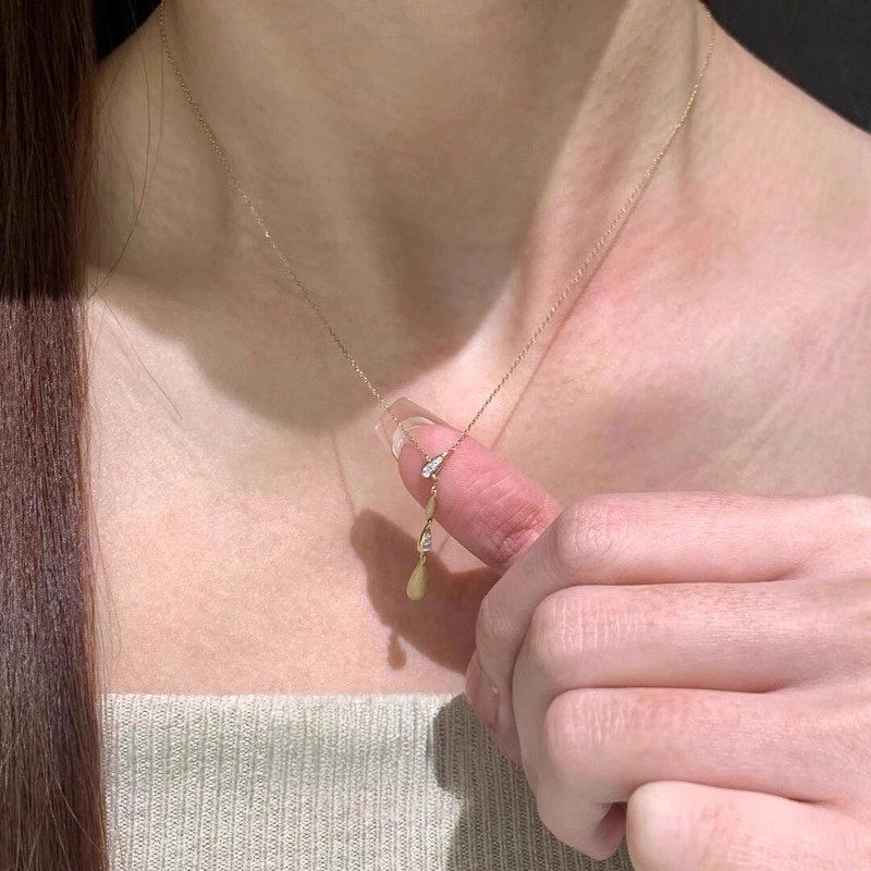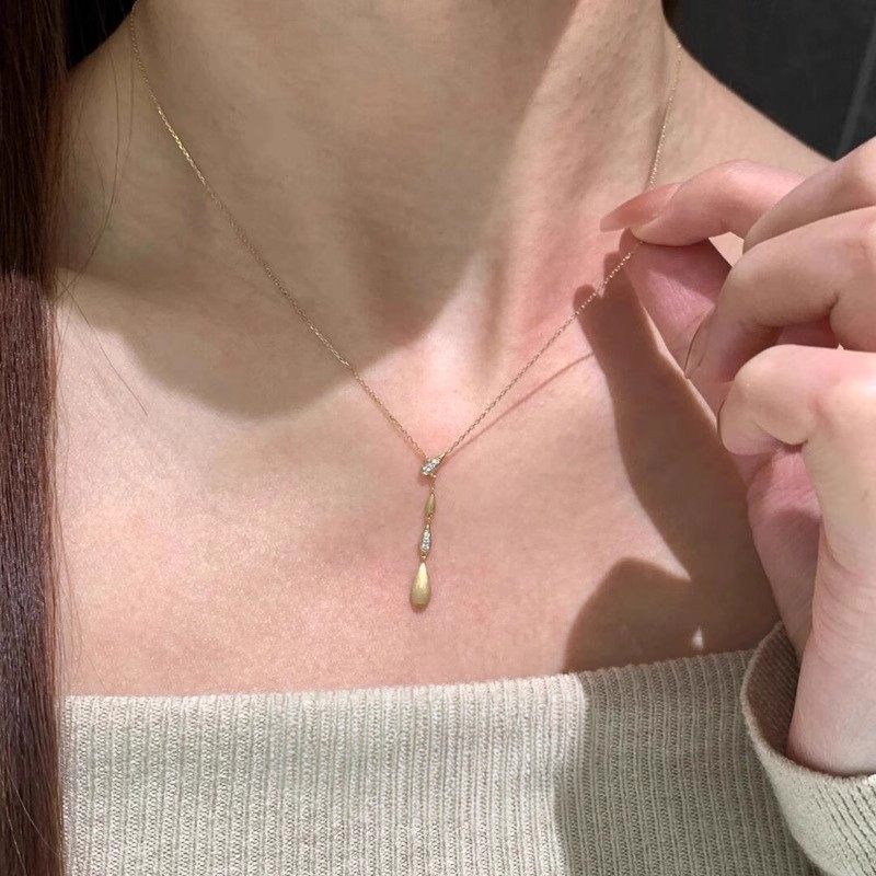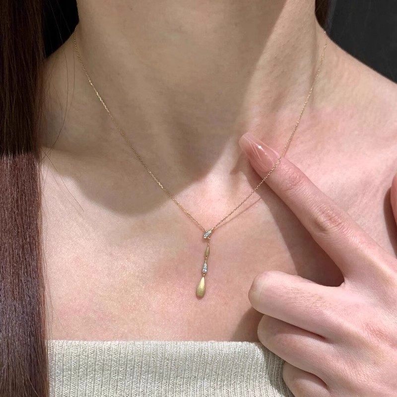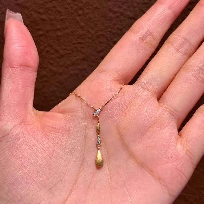极简主义~y字拉丝金色悬浮水滴闪钻极细款锁骨链女轻奢高级感配饰