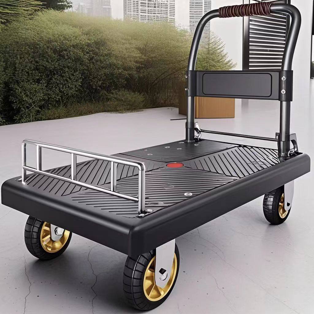 304不锈钢手推车平板搬运车拉货家用静音折叠小推车水产海鲜拖车
