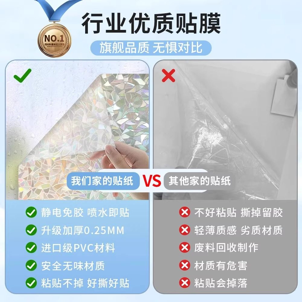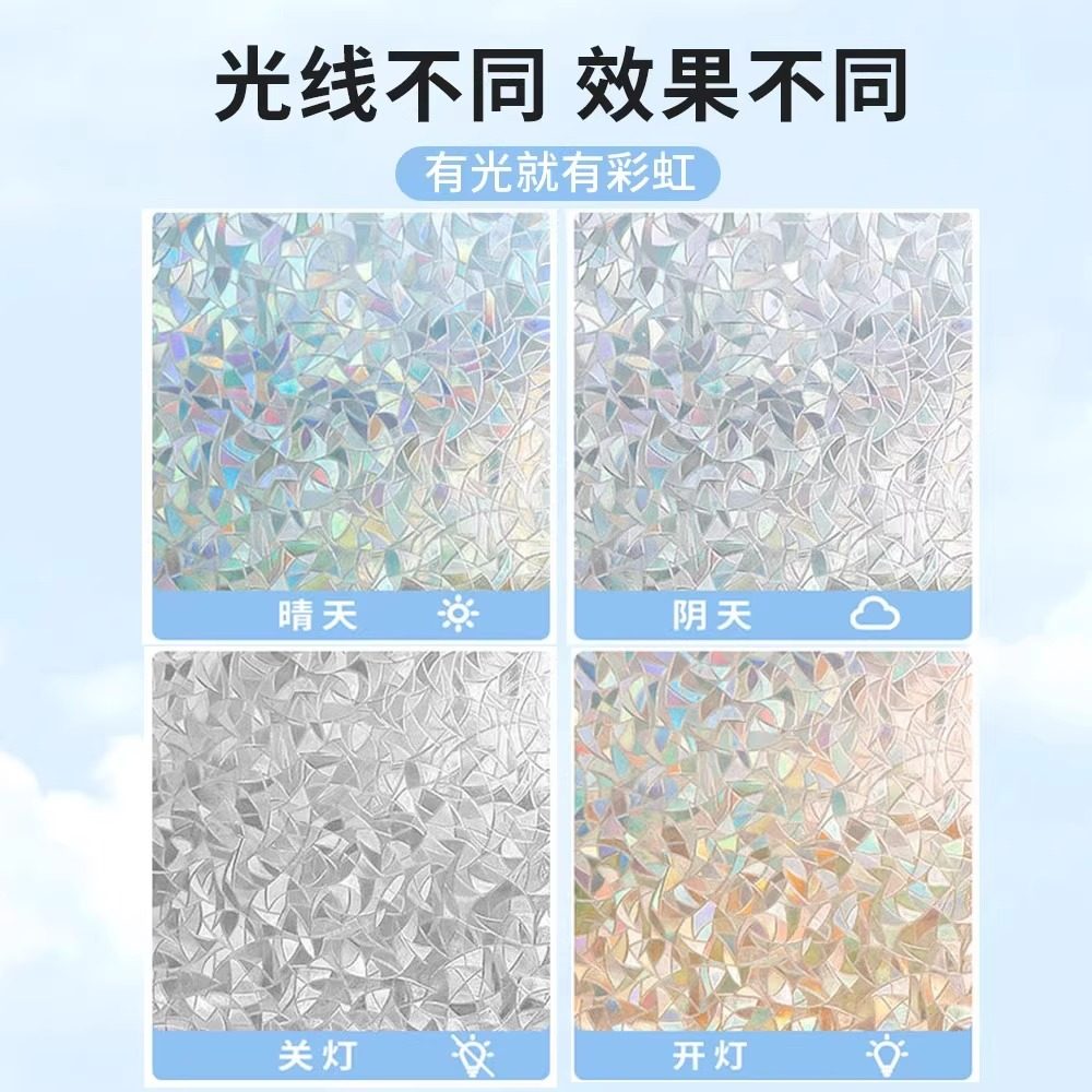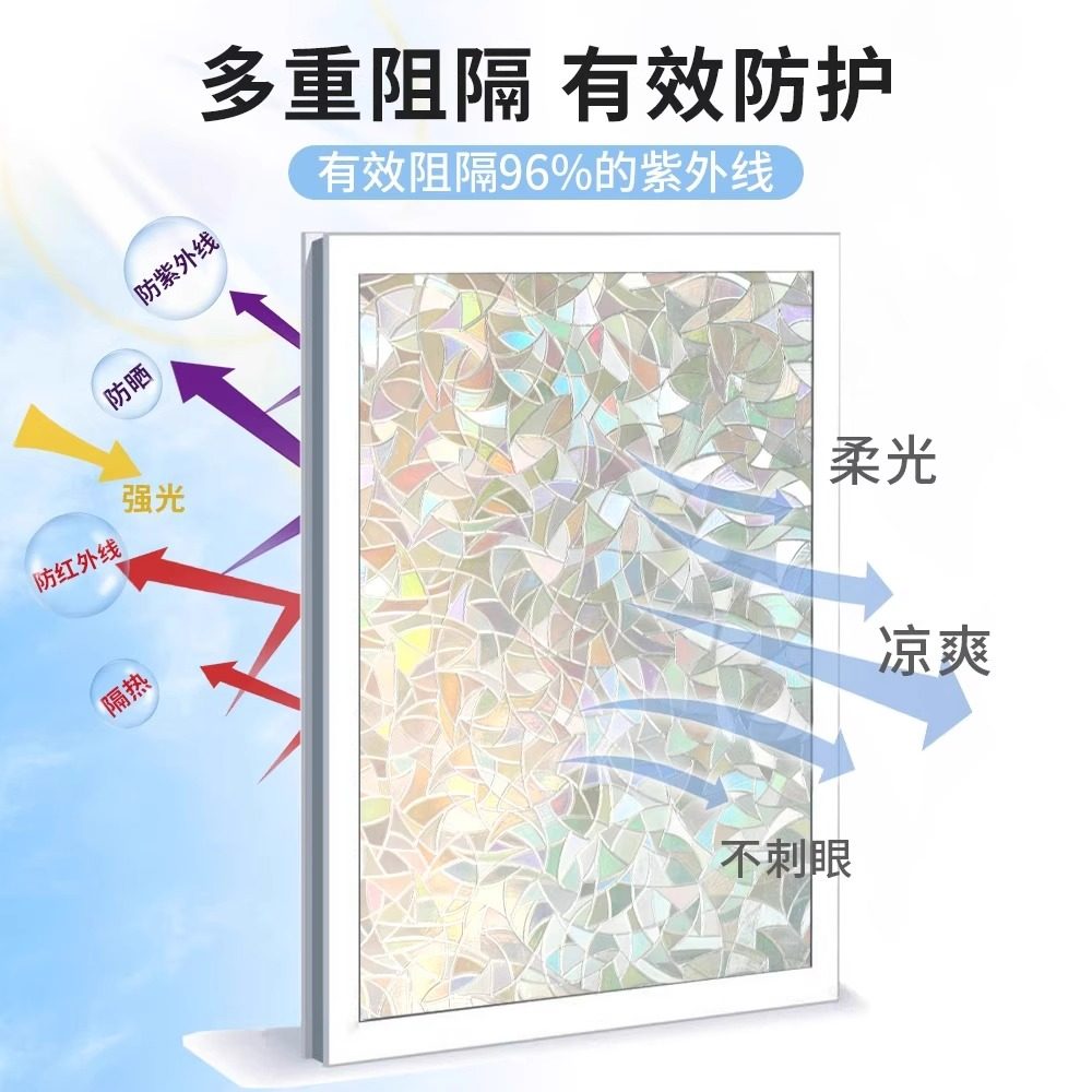 玻璃贴纸彩虹膜静电防窥贴膜窗贴卫生间窗户透光不透明玻璃膜立体