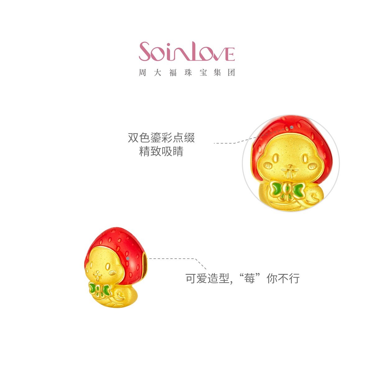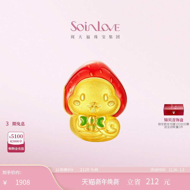 周大福SOINLOVE「萌宠」草莓蛇生肖蛇黄金转运珠VR1418生日礼物