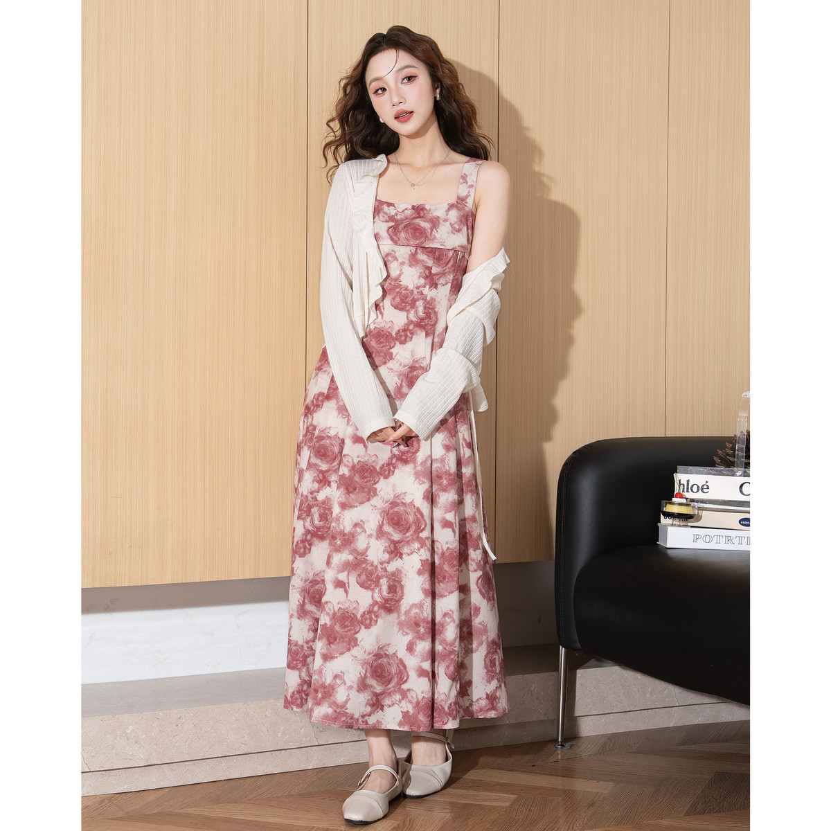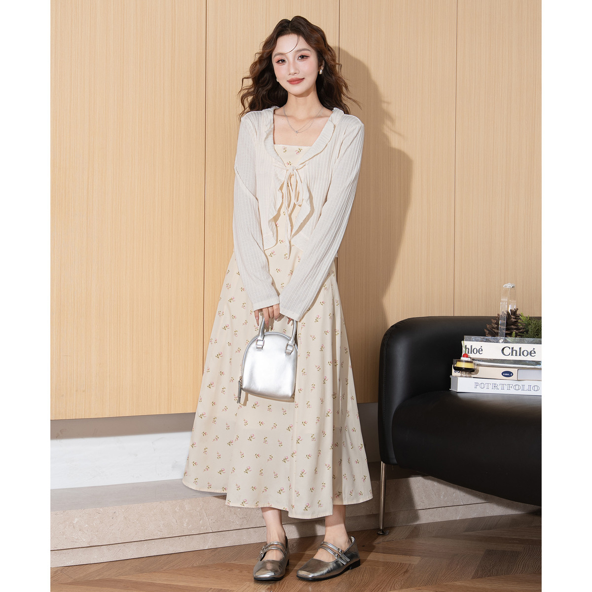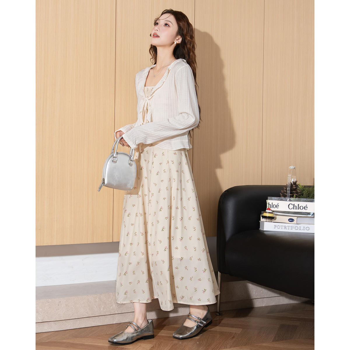 唐狮秋季套装女法式碎花气质收腰长裙上下两件套减龄高级感TM