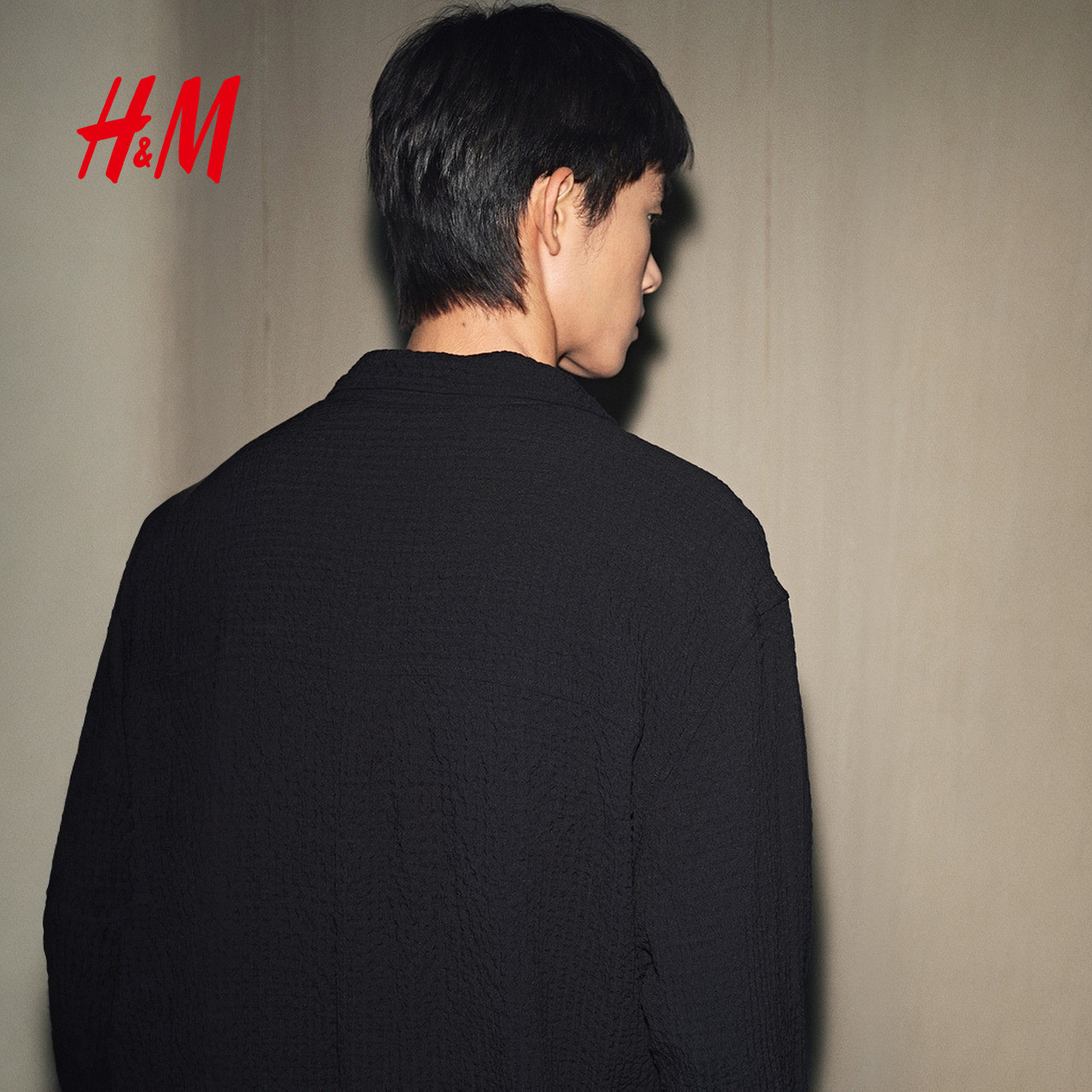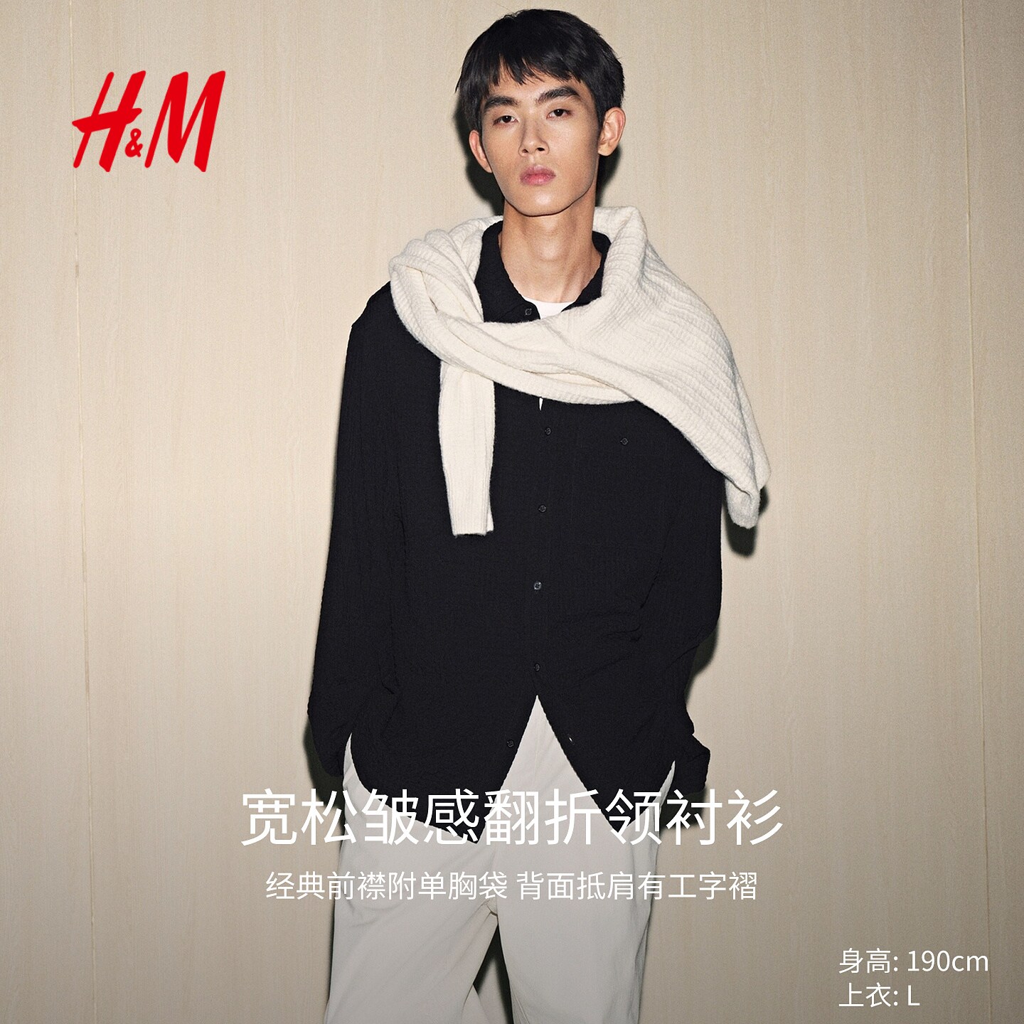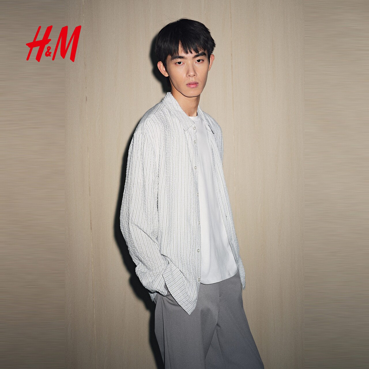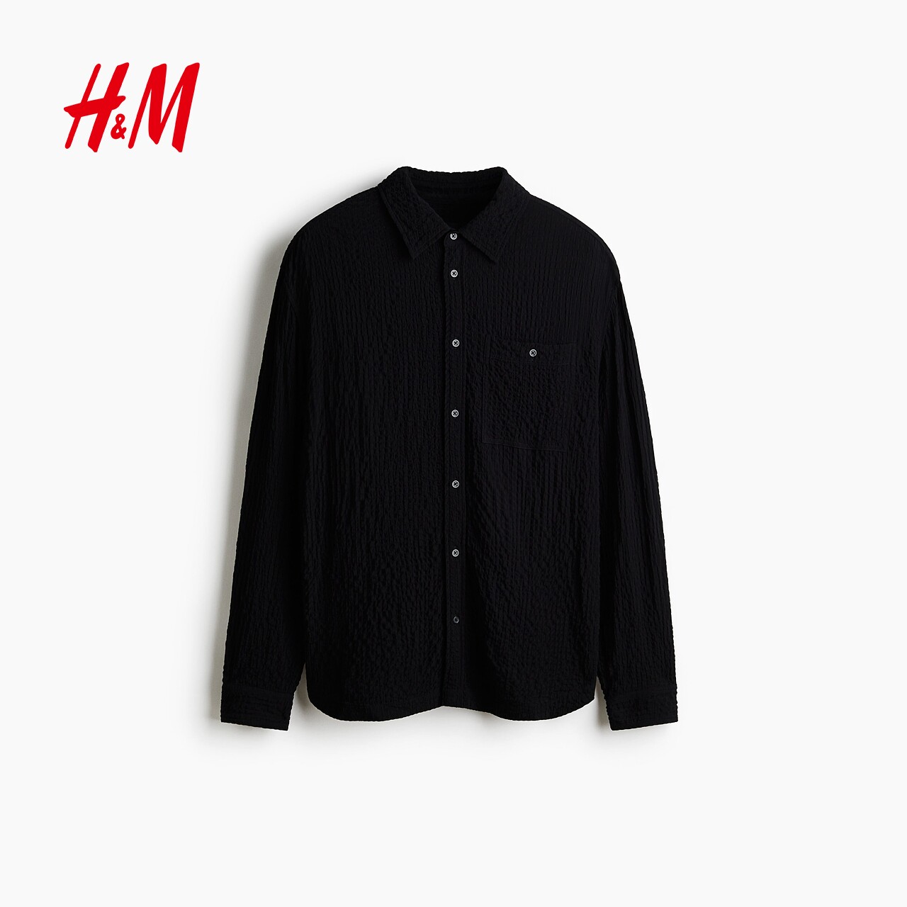 HM男装衬衫春季宽松皱感通勤时尚衬衣1300728