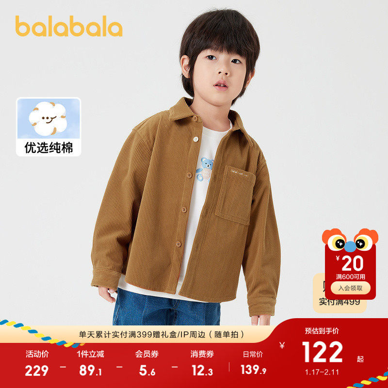 巴拉巴拉童装儿童衬衫男童衬衣长袖翻领秋装灯芯绒亲子装休闲百搭