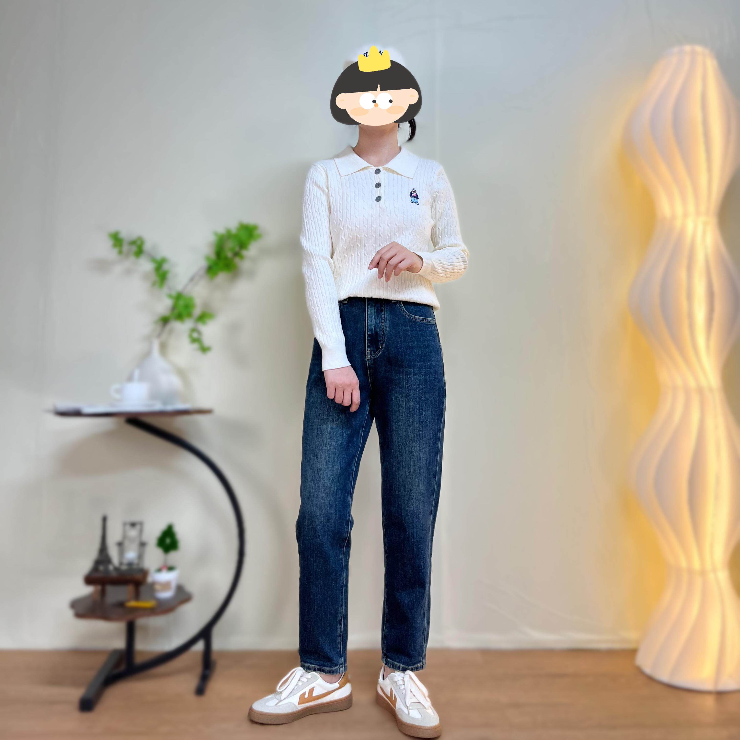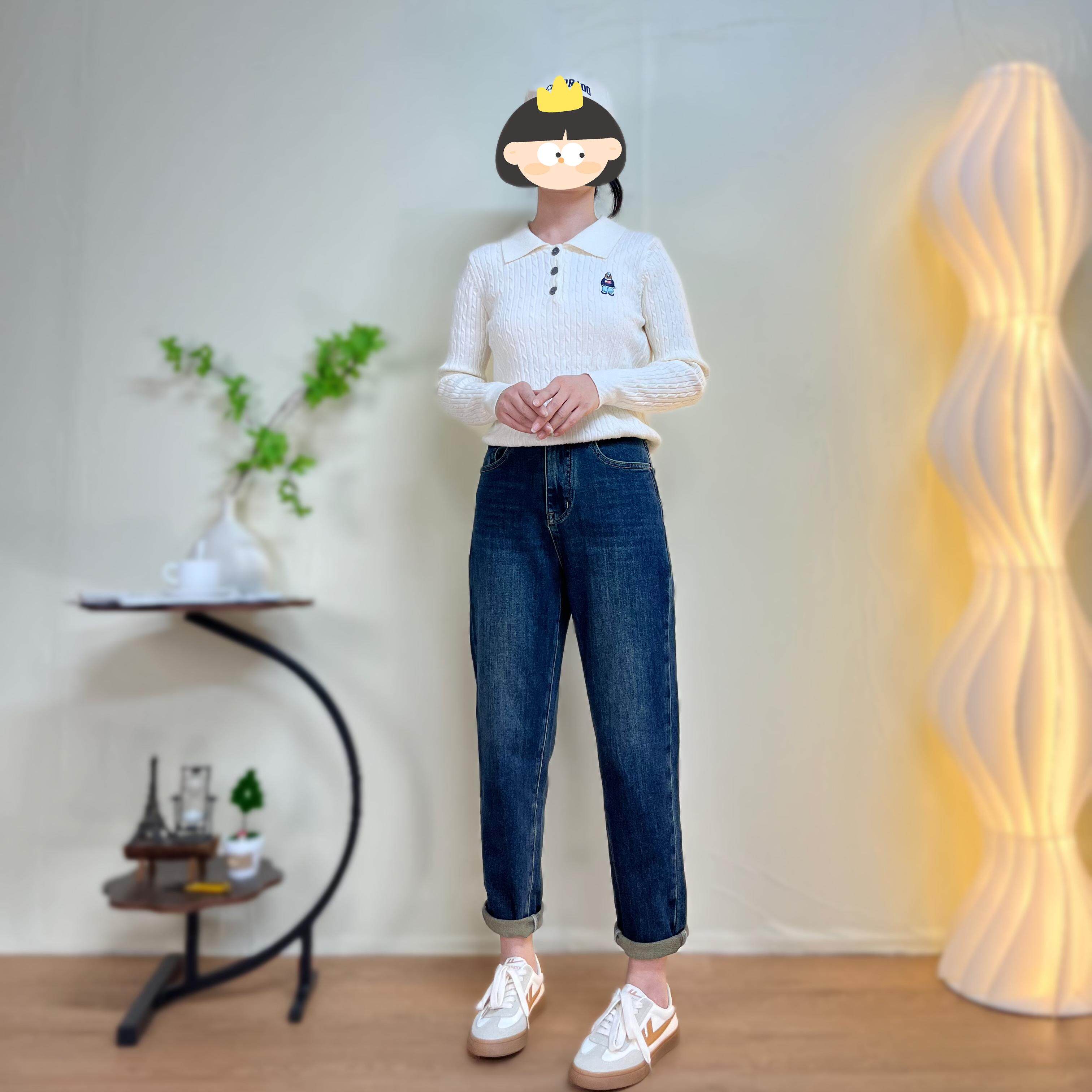 王家有鱼加绒小个子复古蓝直筒阔腿裤女2025年秋冬新款百搭牛仔裤