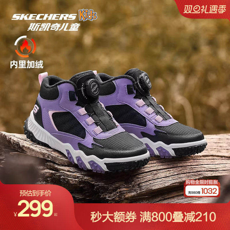Skechers斯凯奇儿童靴子冬季女童户外防滑耐磨加绒保暖舒适运动鞋
