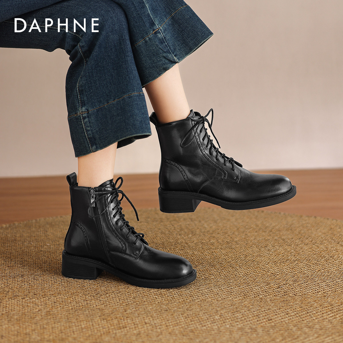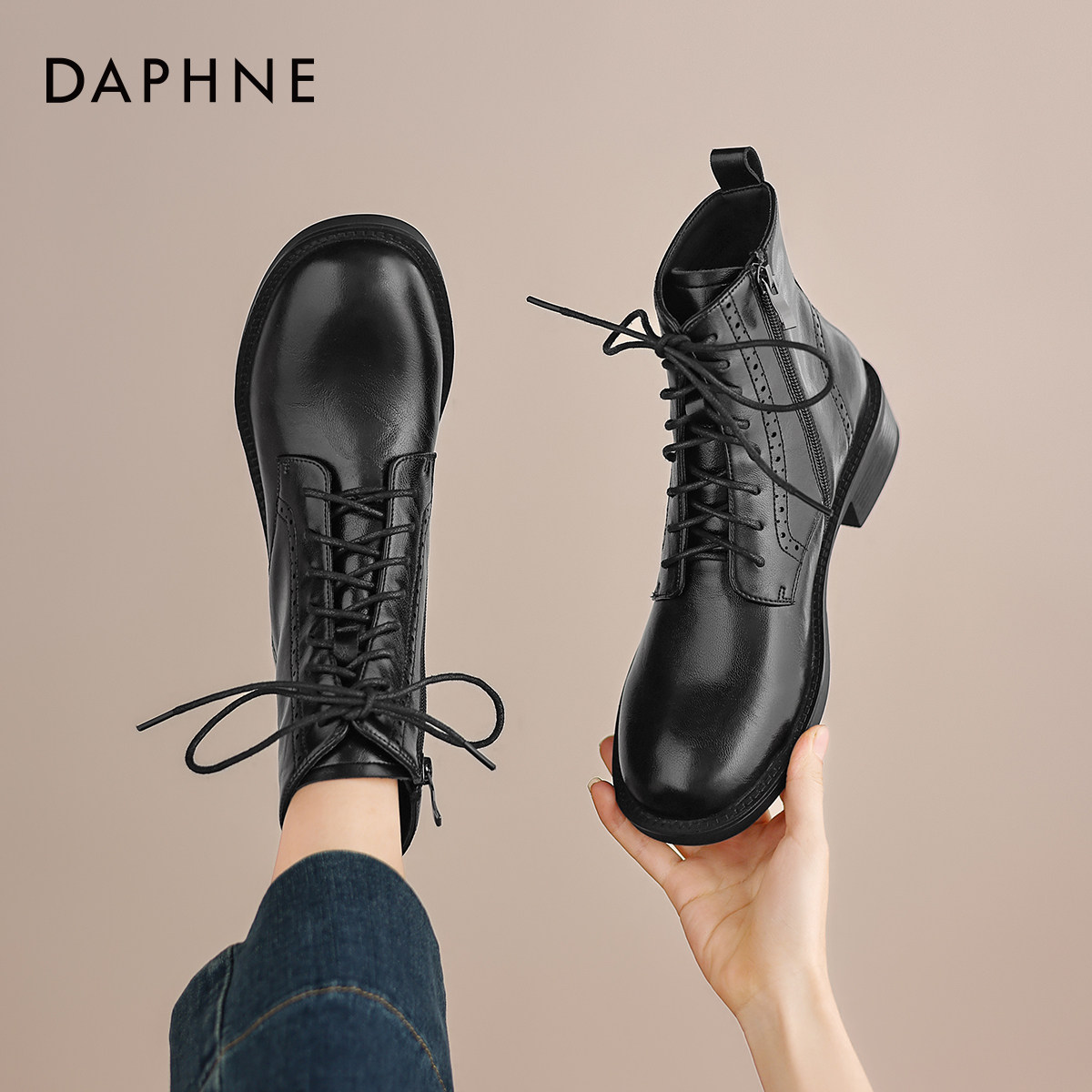 达芙妮棕色马丁靴女款2026新款秋冬粗跟瘦瘦靴短靴平底女士骑士靴