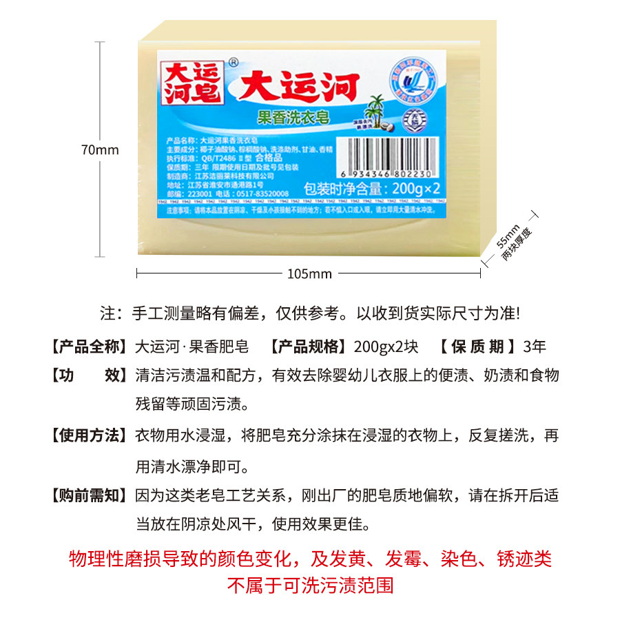大运河果香洗衣皂200g老肥皂无磷去污去渍尿布国货清洁强力年货节