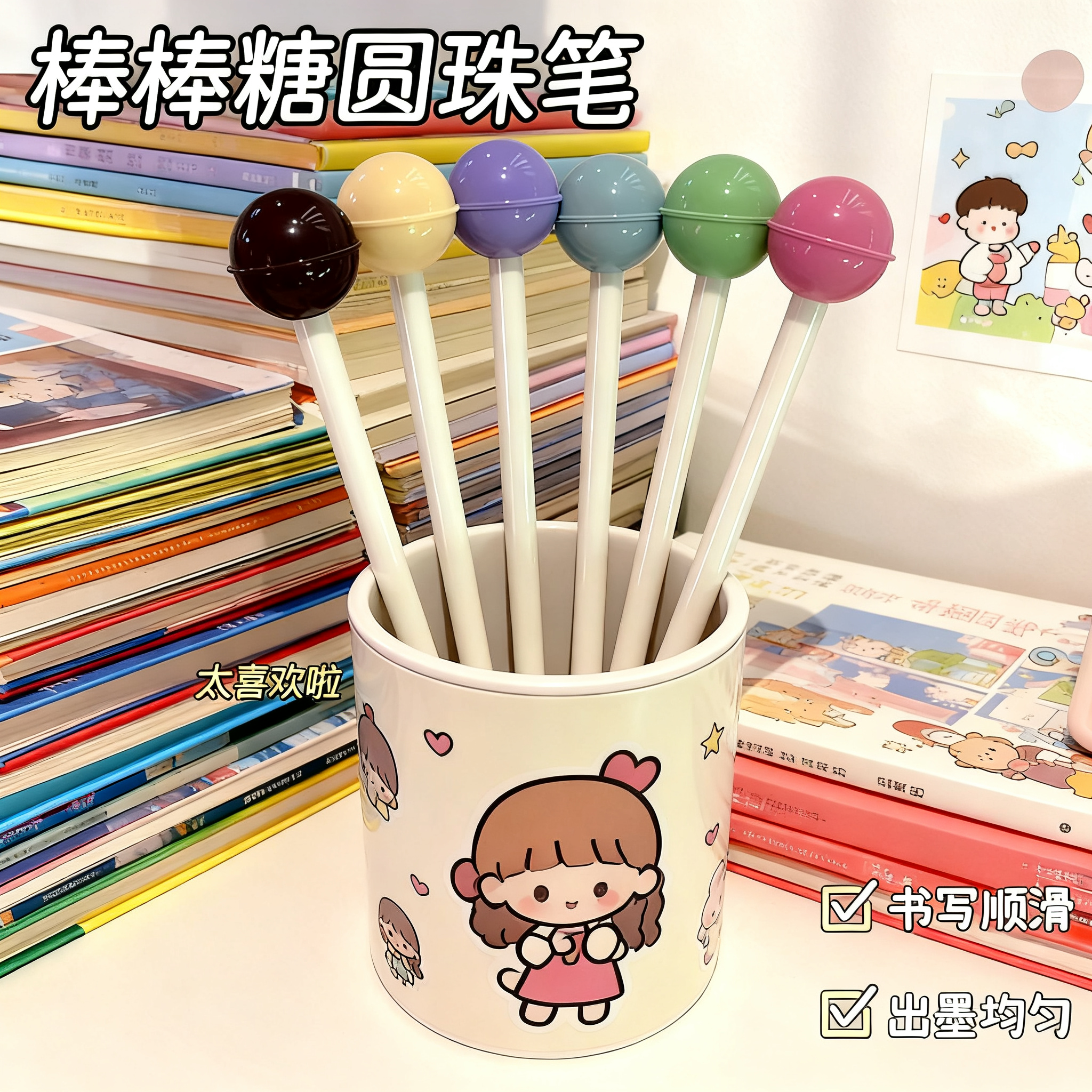 2026新款高颜值文具笔学生文具樱桃糖棒棒糖造型中性笔可爱糖果色水笔0.5mm黑色笔芯学习办公文具