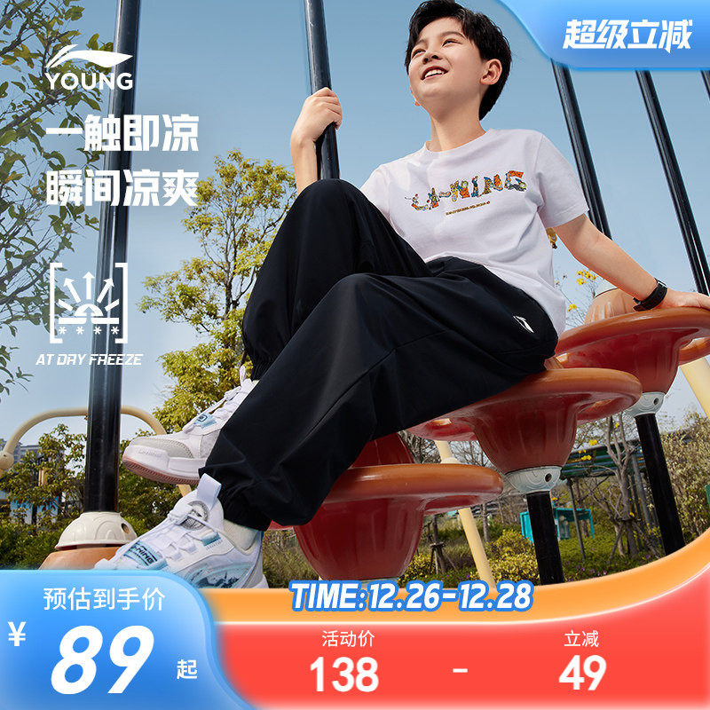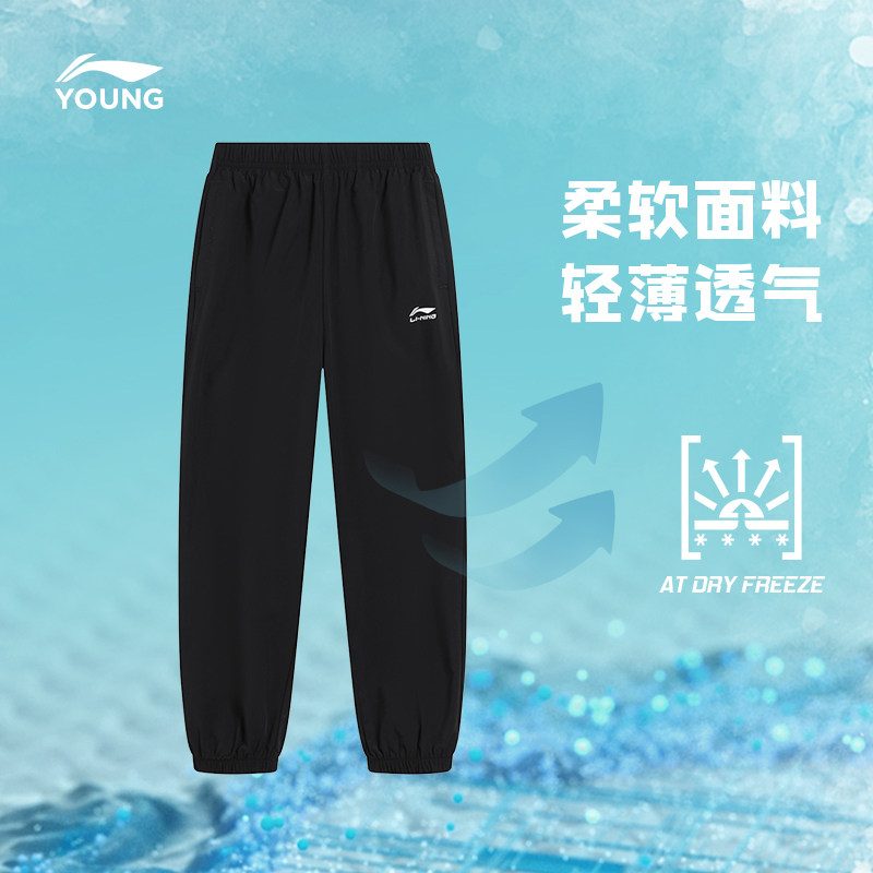 李宁凉感防蚊裤男童女童小童儿童新款大童夏季夏款运动裤薄款长裤