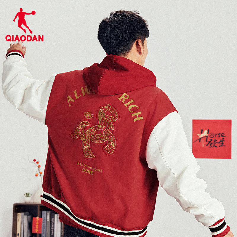 商场同款乔丹官方旗舰店红色新年棉服男士马年本命年外套棒球服男