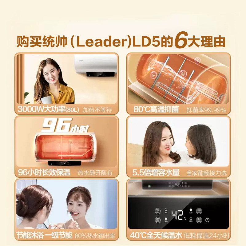 海尔出品统帅电热水器洗澡家用卫生间速热节能大容量LD5官方