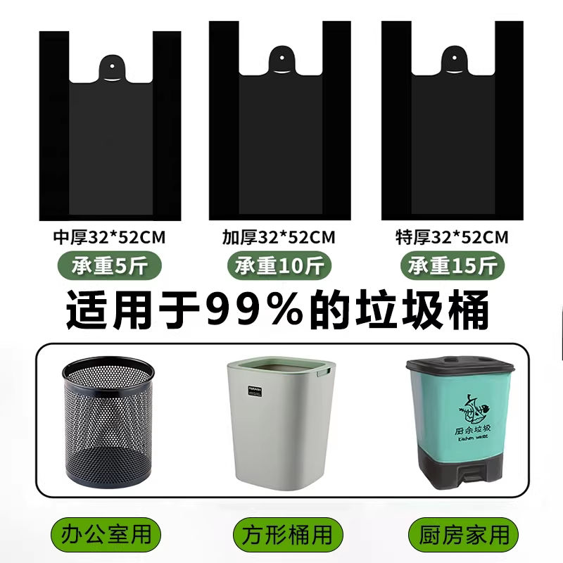 垃圾袋家用加大加厚黑色背心塑料袋厨房手提特厚结实环保收纳