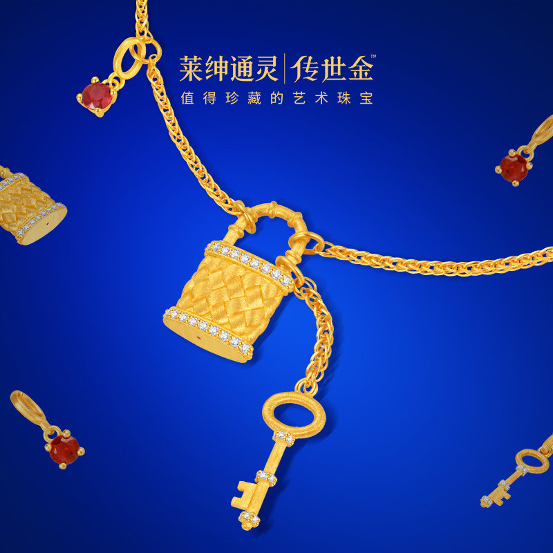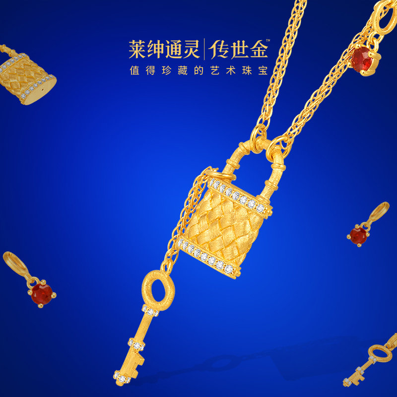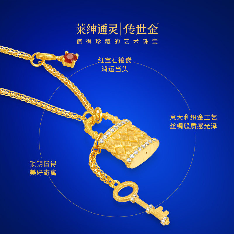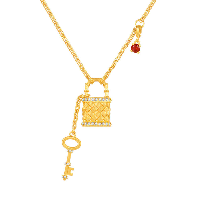 【商场同款】莱绅通灵传世金 明星同款Keys足金红宝石钻石项链