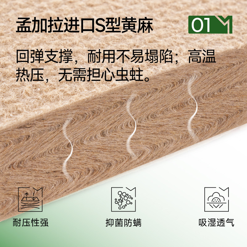 麻大师豆芽乳胶双人硬垫黄麻护脊椎弹簧席梦思家用记忆棉厚床垫子