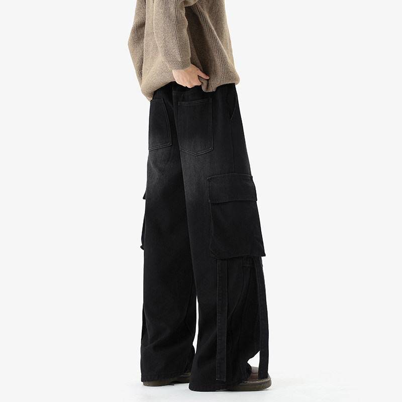 RAPPEYE 国潮设计感复古美式高街宽松显瘦直筒侧袋弯刀阔腿牛仔裤