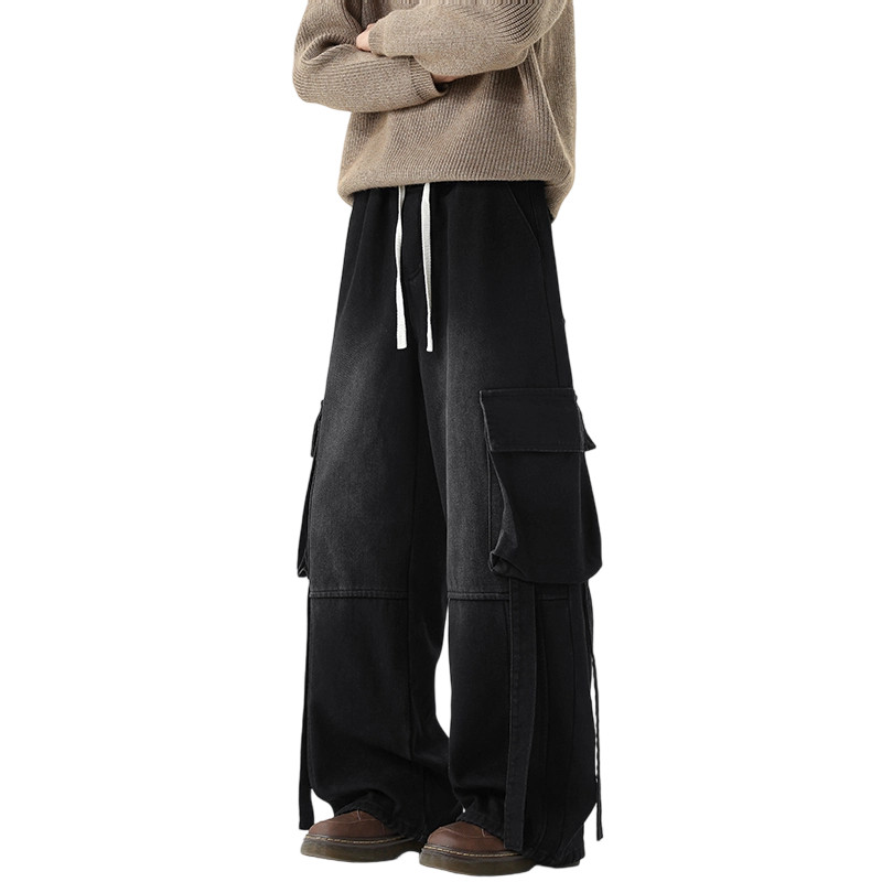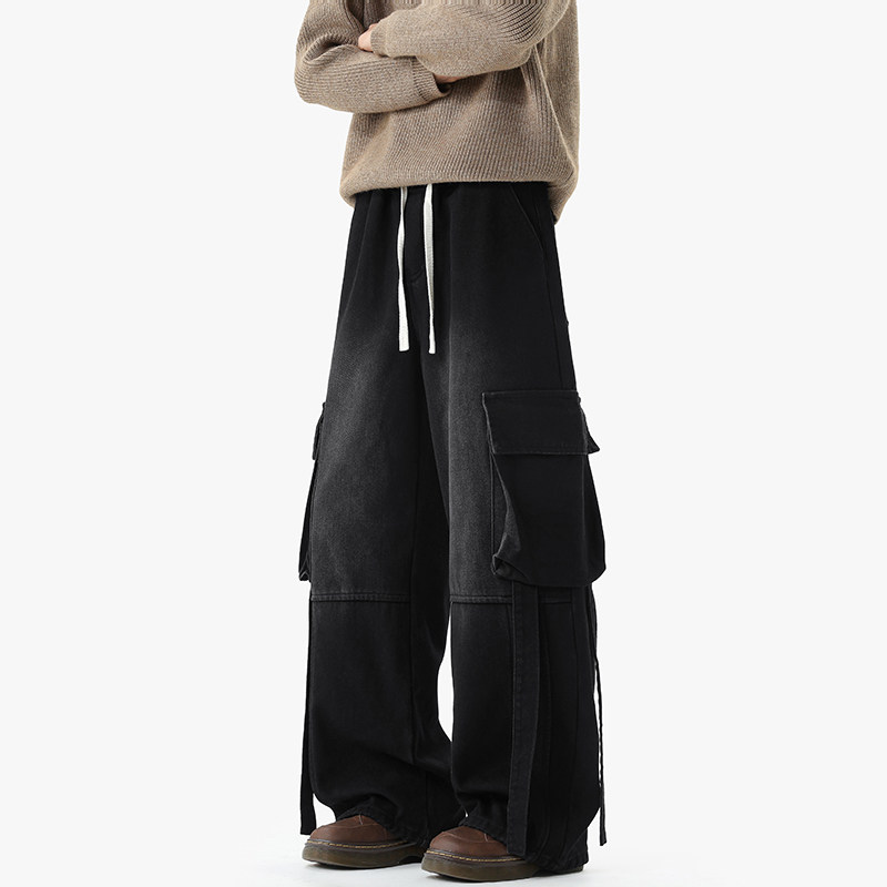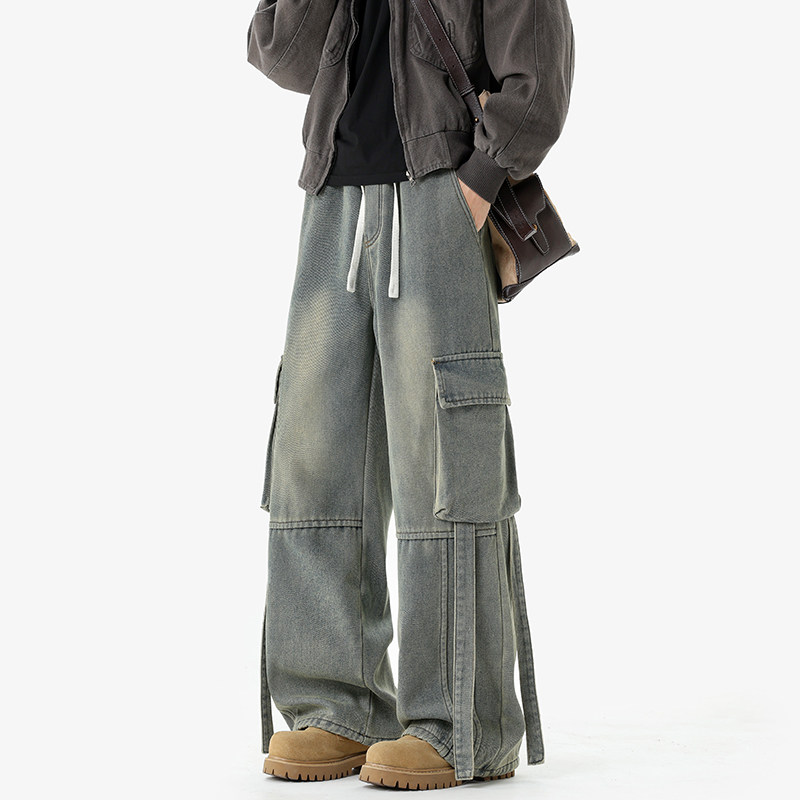工装牛仔裤男2025新款秋冬季加绒水洗美式潮牌宽松直筒阔腿长裤子