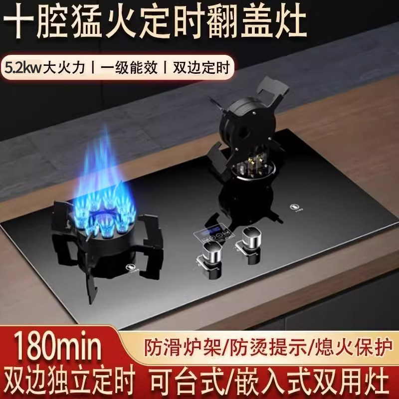 好太太燃气灶双灶家用天然气猛火台式液化气嵌入式翻盖煤气炉人工
