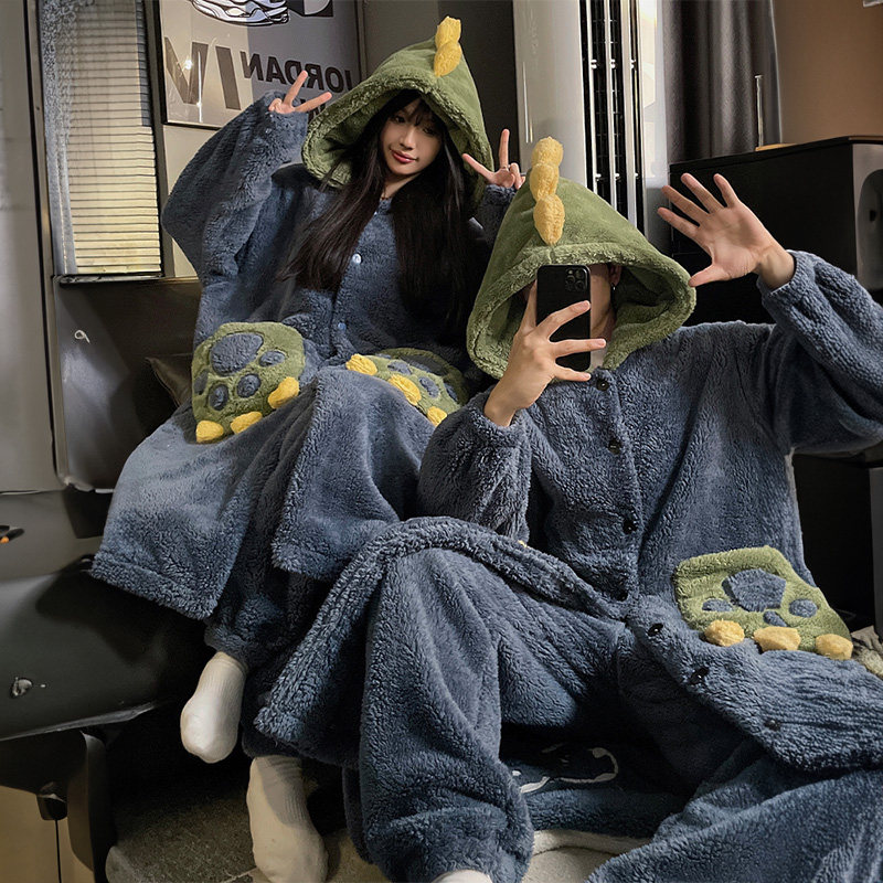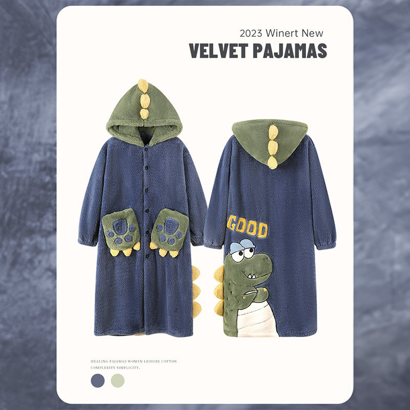 情侣睡衣女款秋冬季加绒加厚男士睡袍珊瑚绒冬天法兰绒浴袍家居服