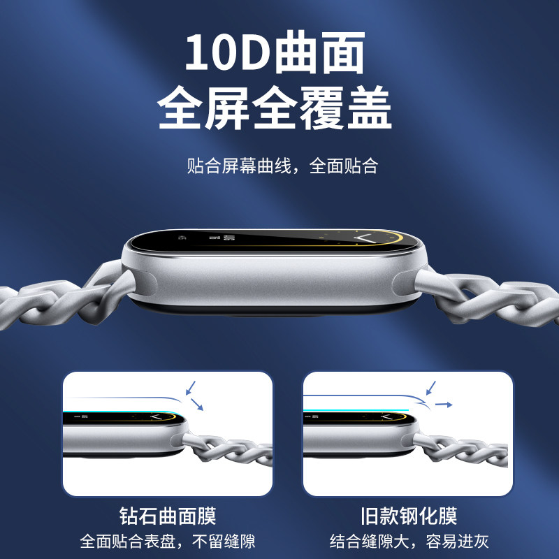 适用小米手环10保护膜9手环8钢化水凝膜9pro全屏覆盖nfc手表贴膜智能全包防指纹曲面表膜运动高清十新款mi九