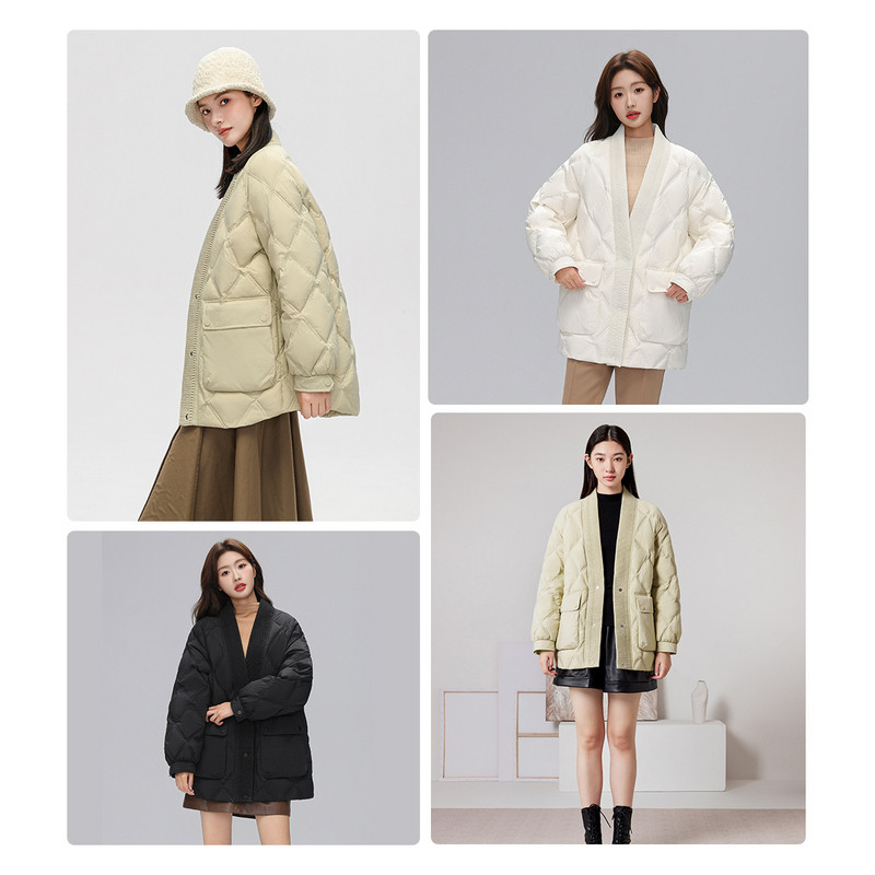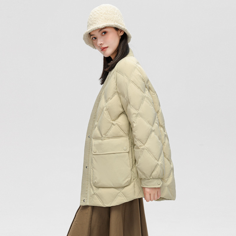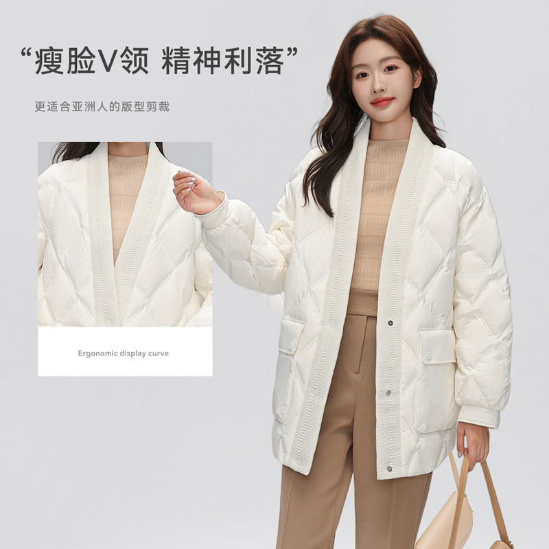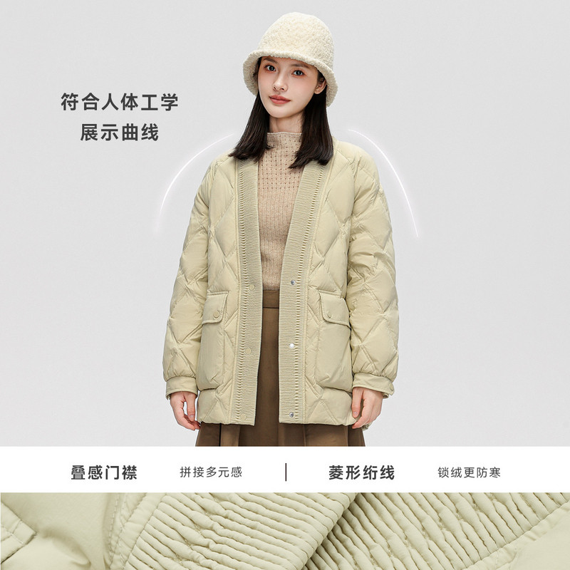 雪中飞2025秋冬新款女士短款大V领羽绒服廓形时尚菱格鸭绒保暖