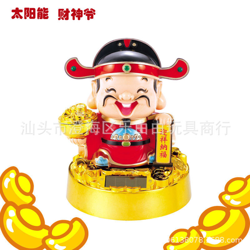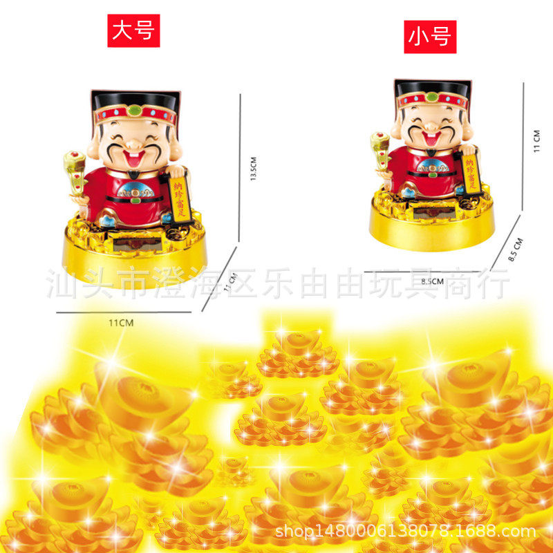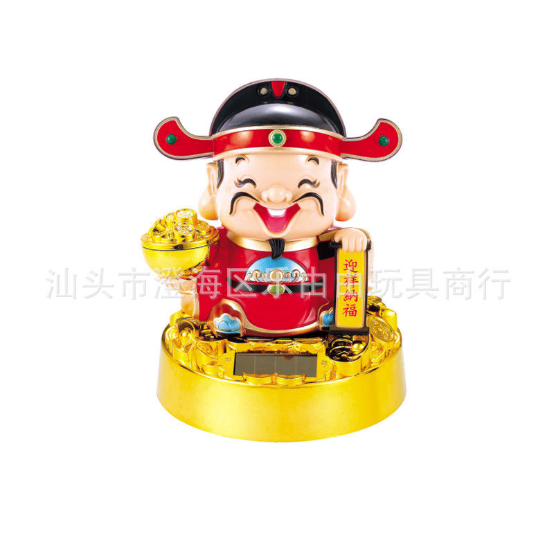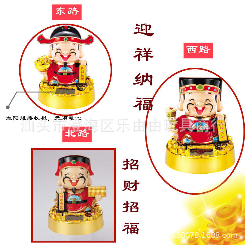 车载摆件 小号太阳能摇头五路财神摆件开店送礼家居摆饰