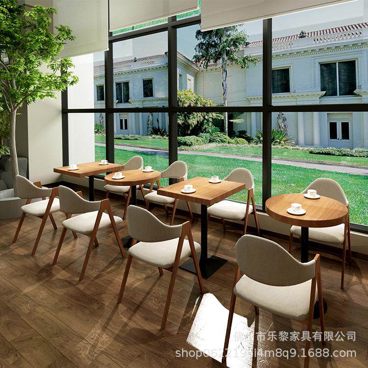 咖啡厅甜品店主题餐饮中西餐厅餐桌椅实木洽谈桌餐桌家具全实木
