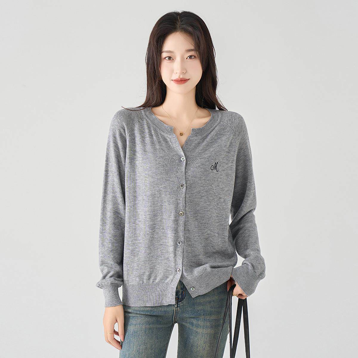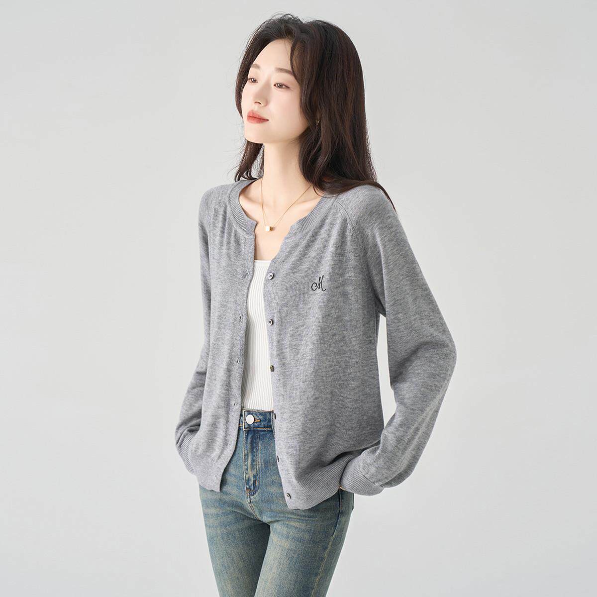 one more纯色圆领简约气质宽松长袖开衫2025春季叠穿内搭毛衣女